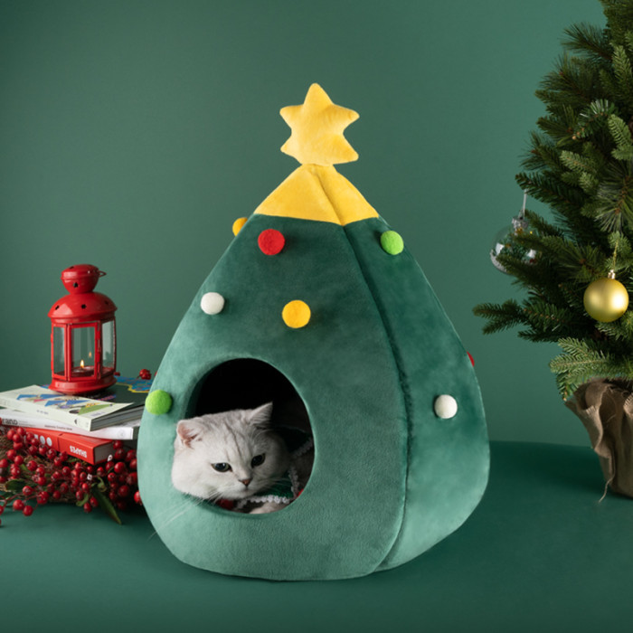 貓窩聖誕樹封閉式貓屋別墅小型犬狗狗窩秋冬季保暖可拆洗聖誕節窩