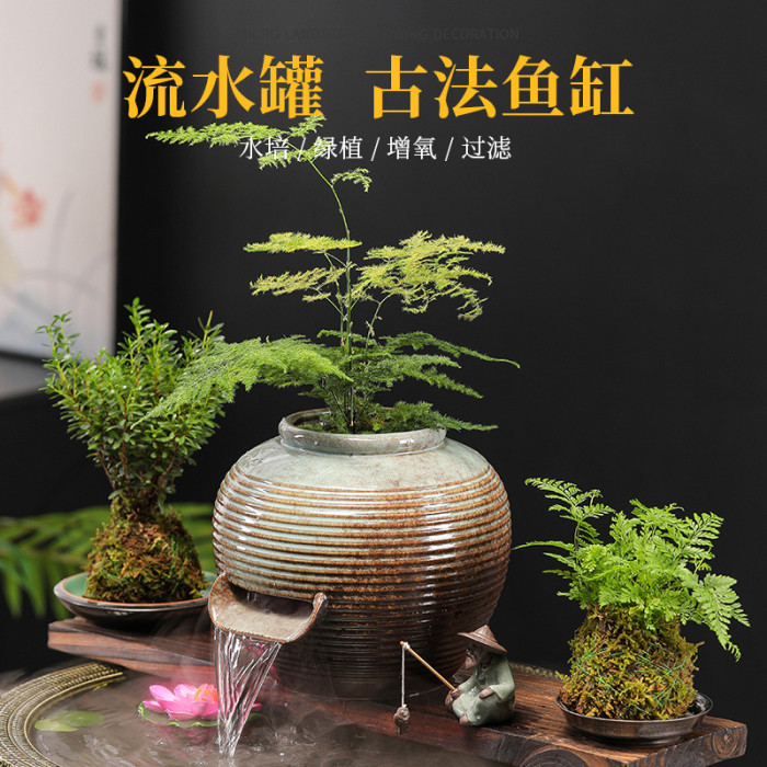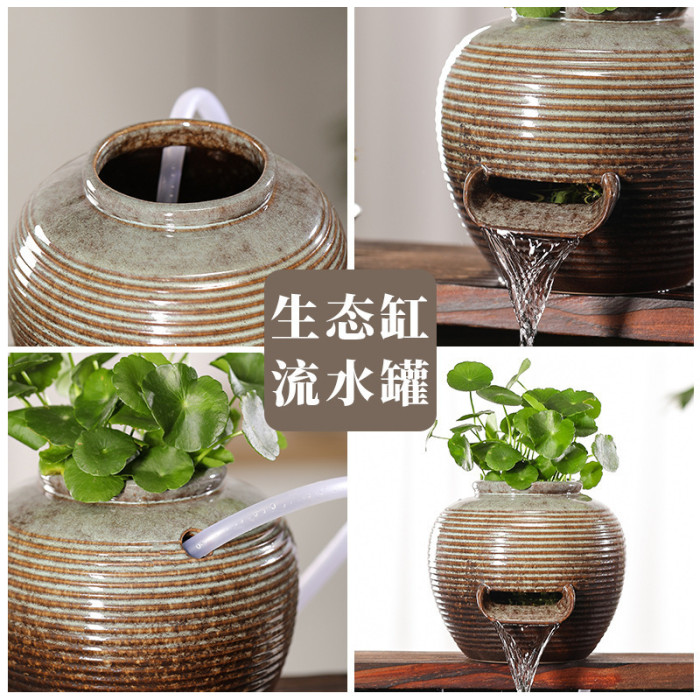 古法魚缸瀑布造景流水景觀循環流水陶罐戶外庭院魚池水缸造景擺件