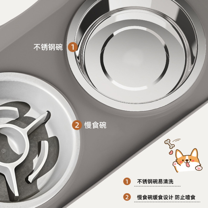 新品狗狗高架雙碗可折曡中大型犬慢食護頸耐用不鏽鋼寵物狗盆
