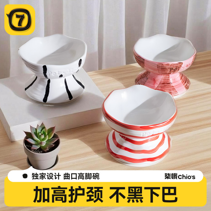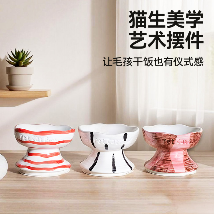貓碗陶瓷貓食盆寵物碗喝水碗高腳糧碗貓咪飯碗不易打翻護頸大口徑