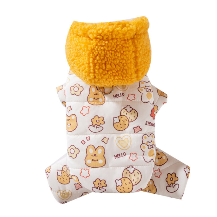秋冬季貓咪滿印絎棉牽引四腳棉衣無毛貓加厚保暖泰迪比熊寵物衣服
