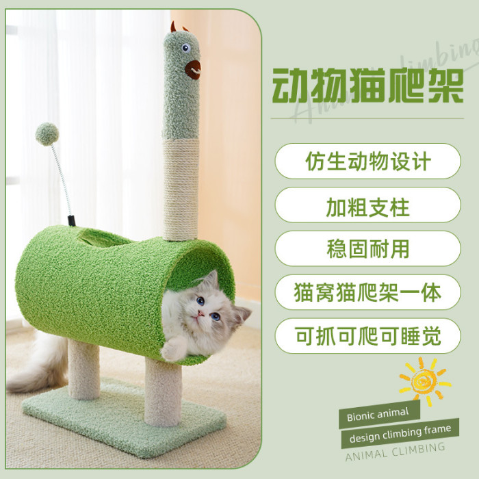 新款動物系列小爬架耐磨貓窩一體麻墊貓抓柱絨布卡通造型貓咪玩具