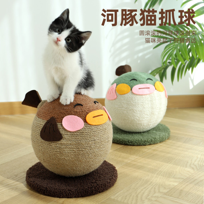 貓咪貓抓球河豚玩具逗貓玩具自嗨解悶狗狗劍麻貓抓球寵物用品