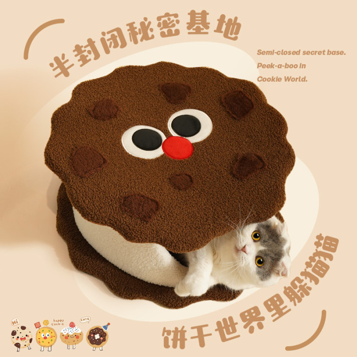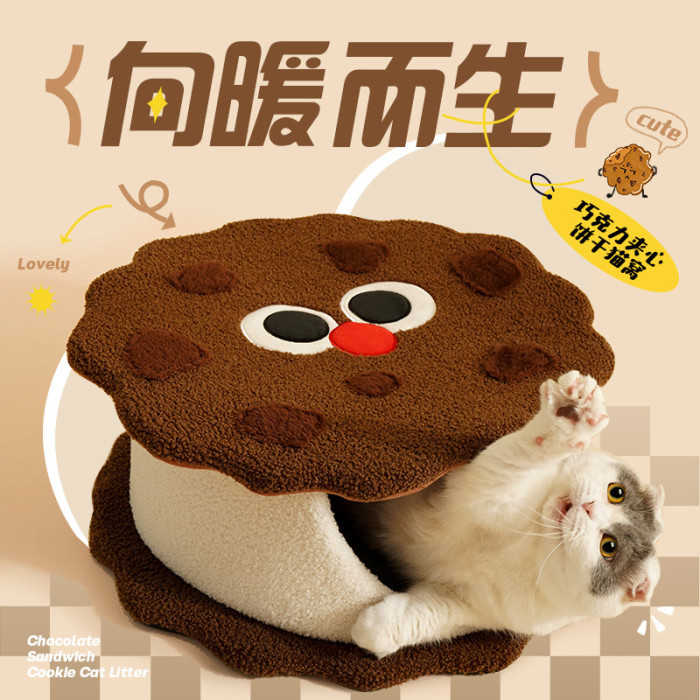 巧克力夾心餅乾貓窩新款可拆卸洗四季通用貓屋睡墊保暖寵物用品