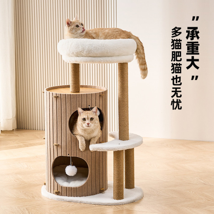 貓爬架家用小戶型樹洞貓窩一體貓爬架子貓咪雙層跳台貓抓柱毛氈桶