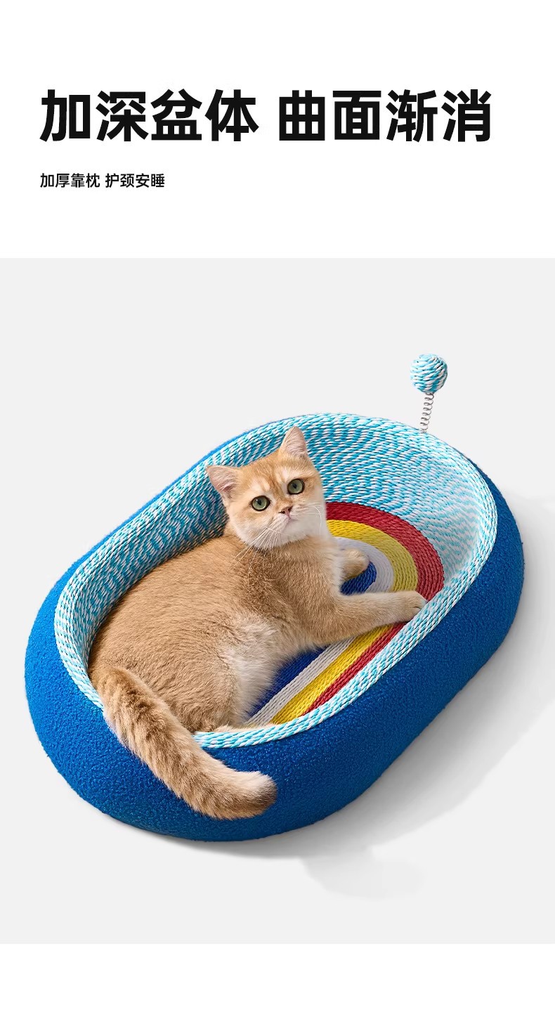 貓窩貓抓板一體深度睡眠窩耐磨不易掉屑貓爪板逗貓棒貓咪玩具耐抓