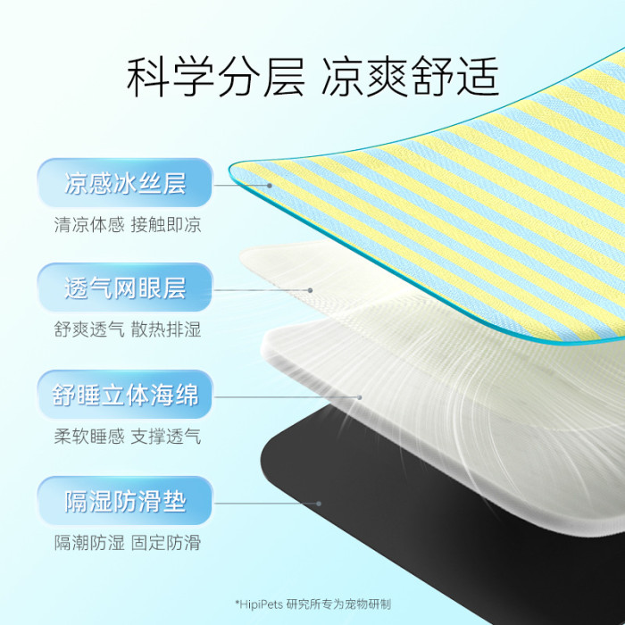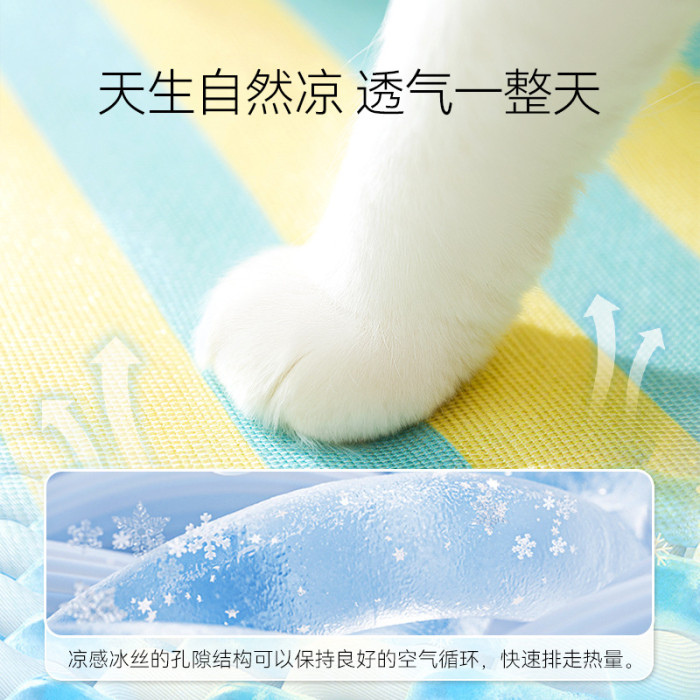 貓咪夏天卡通條紋冰絲涼蓆夏季狗狗睡覺墊子中小型犬狗墊子寵物窩