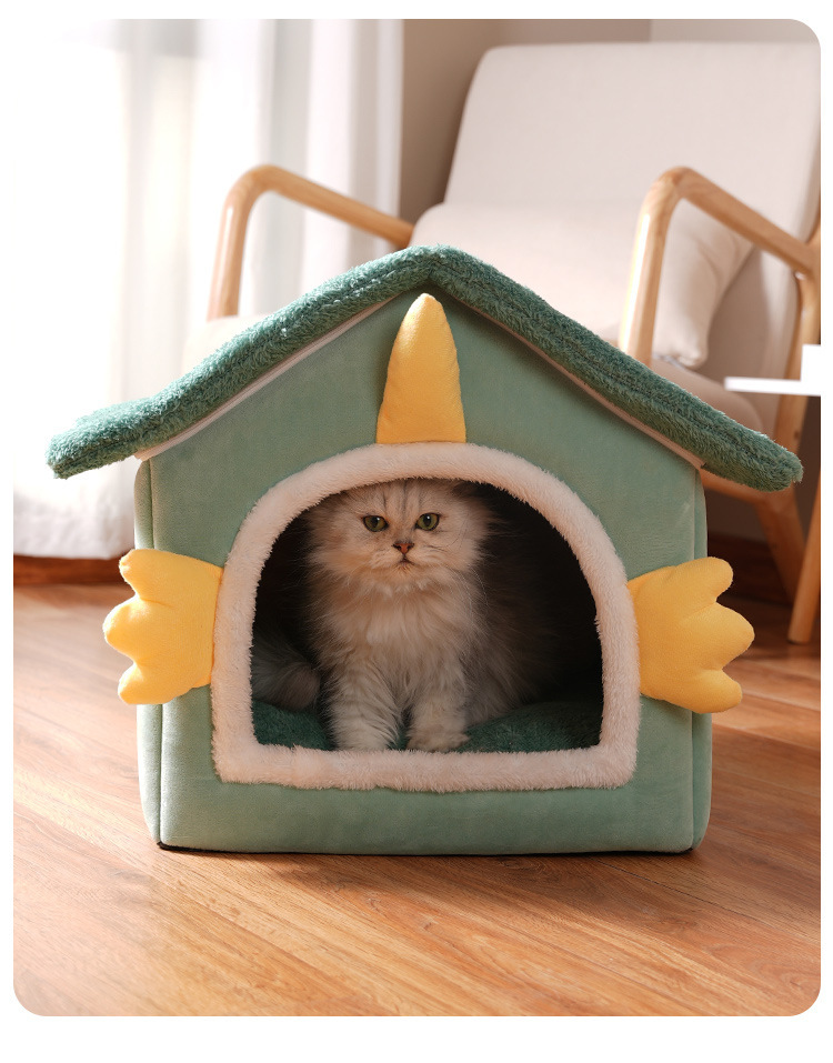 冬季半封閉保暖貓窩狗窩可愛寵物窩小寵物貓窩可拆洗填充棉窩房子