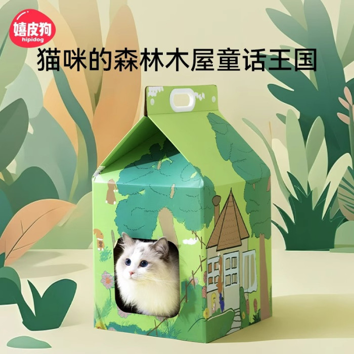 貓咪森林木屋紙箱貓抓板玩睡一體貓窩超大號加厚瓦楞紙寵物貓玩具