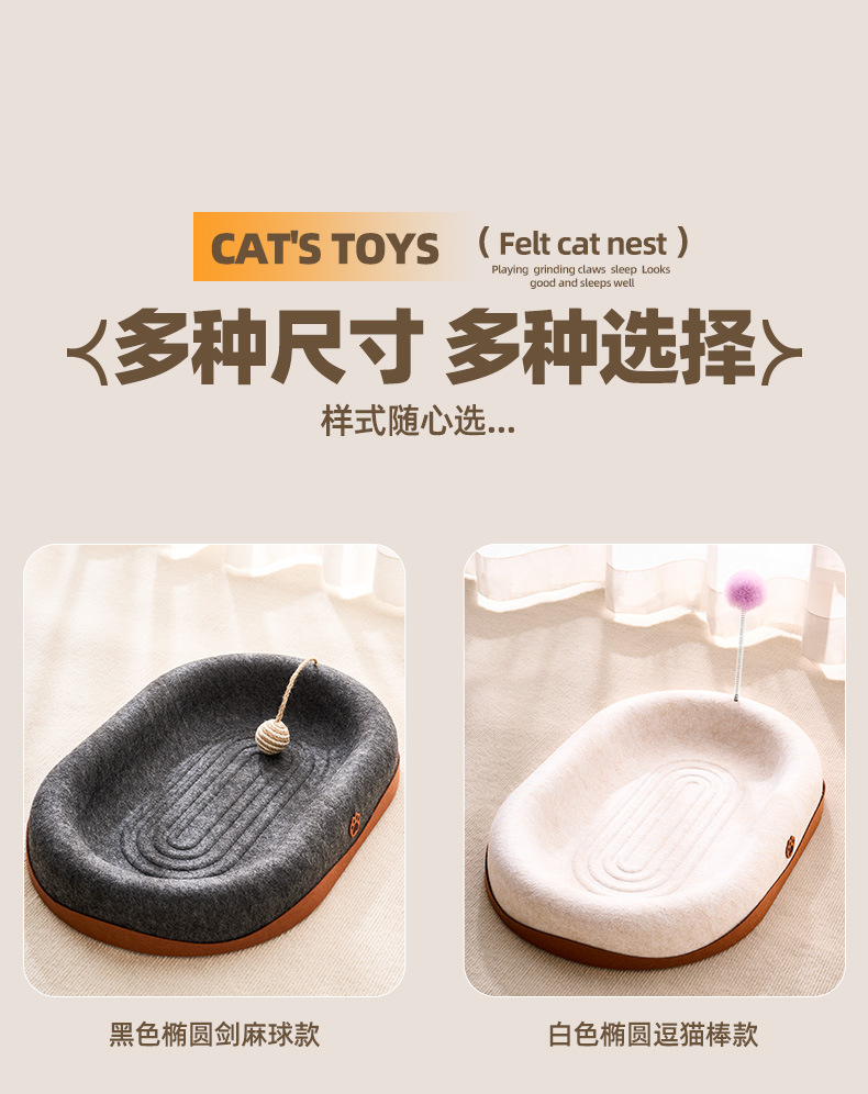 | 規格 | 黑色橢圓毛氈窩+逗貓棒 |
