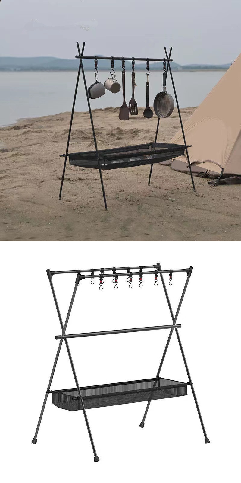 山趣戶外野營折曡可攜式露營三角置物架鍋架收納架燈架掛架支架燈桿