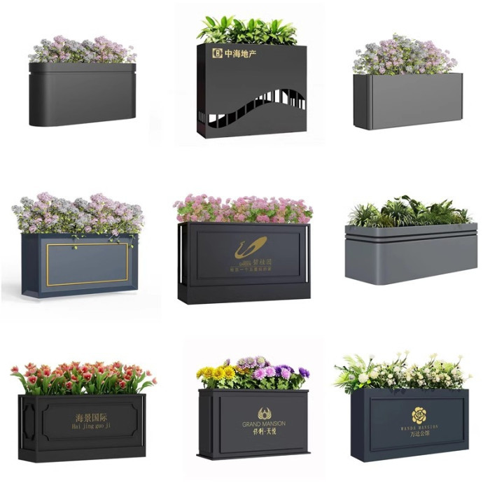 不鏽鋼花箱圓形組合花盆戶外成品花罈商業街外擺花槽金屬花