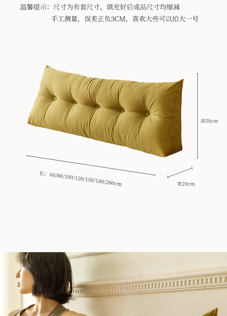蔓越家 感玉米絨床頭三角靠墊沙發腰靠枕榻榻米雙人軟包含芯