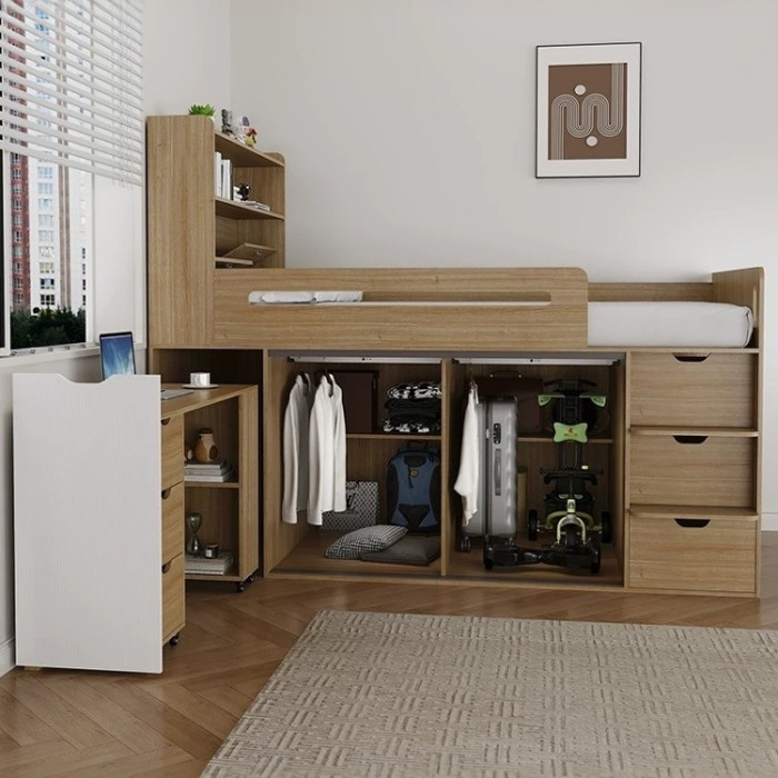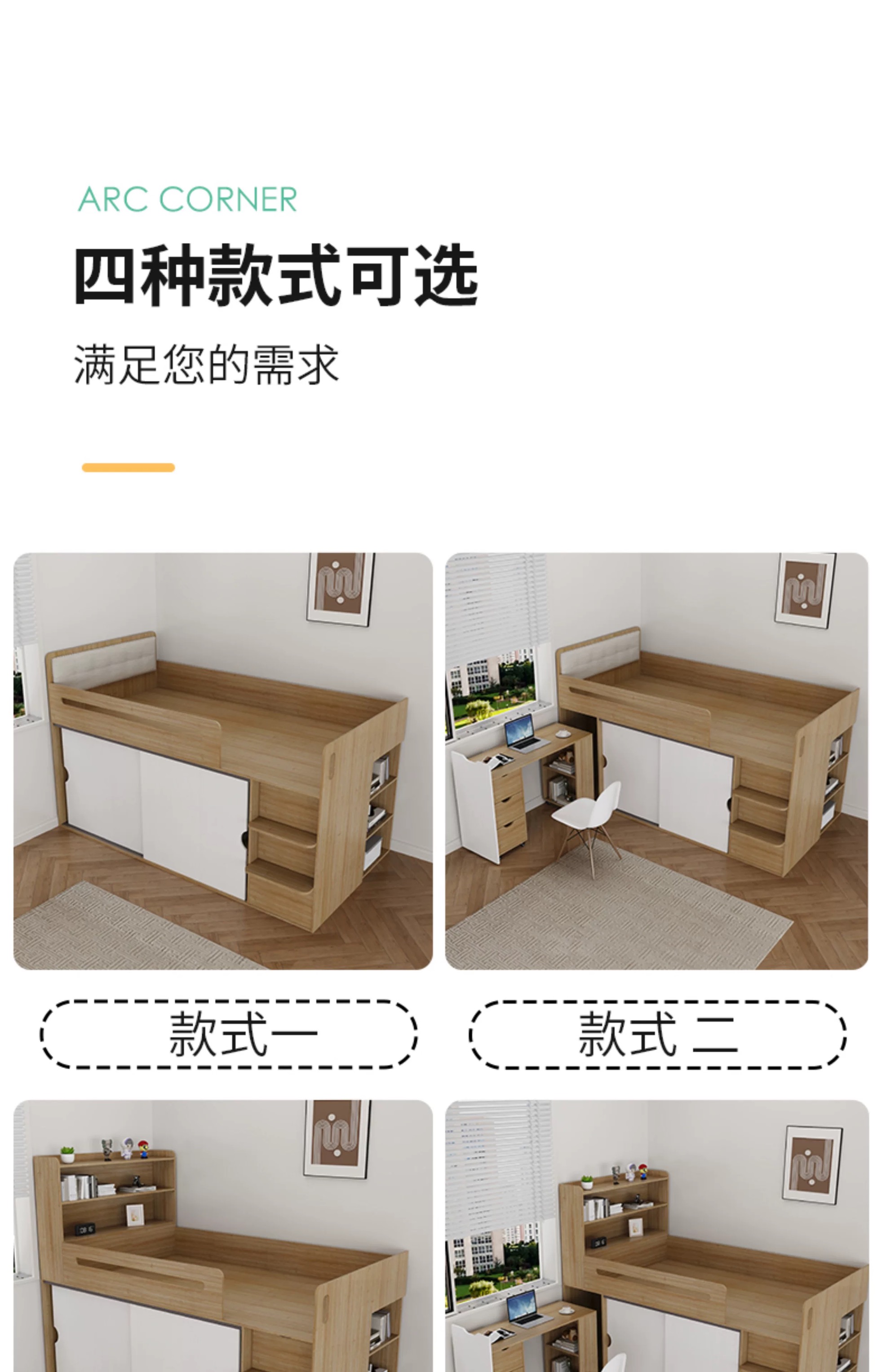 小戶型兒童半高床衣櫃一體多功能帶護欄床書桌收納櫃默認項絹花