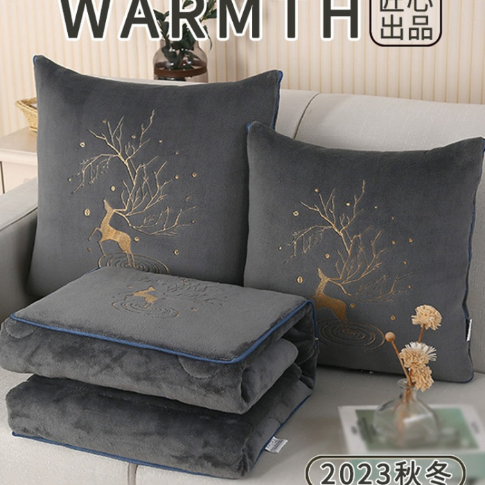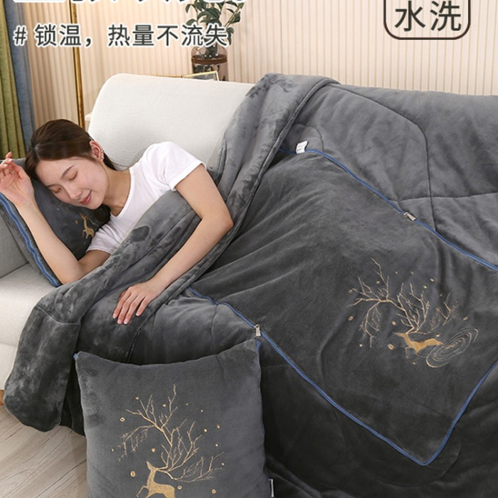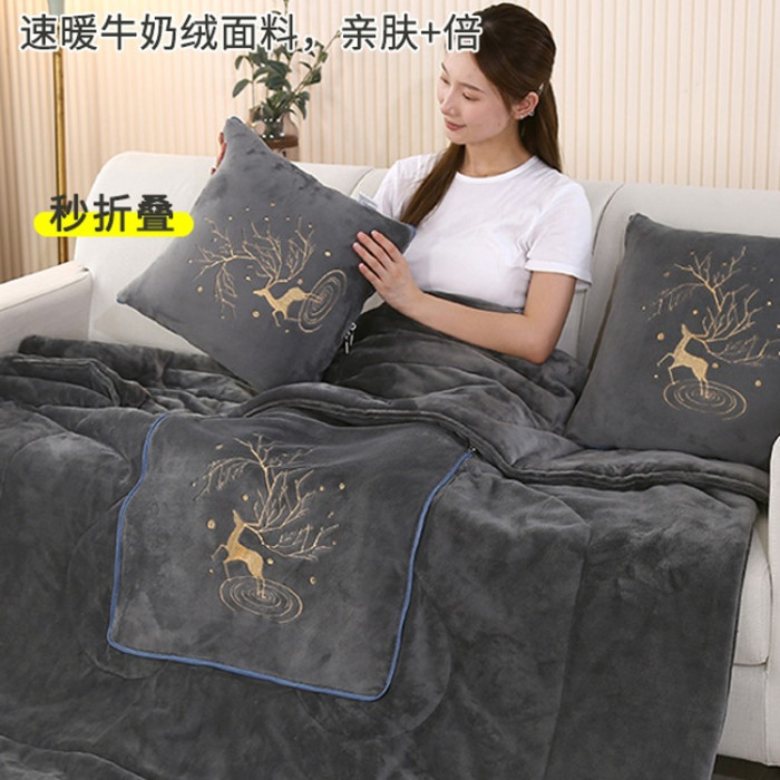 加厚冬季牛奶絨抱枕被子兩用多功能冬天折曡枕頭毯子汽車用午休被