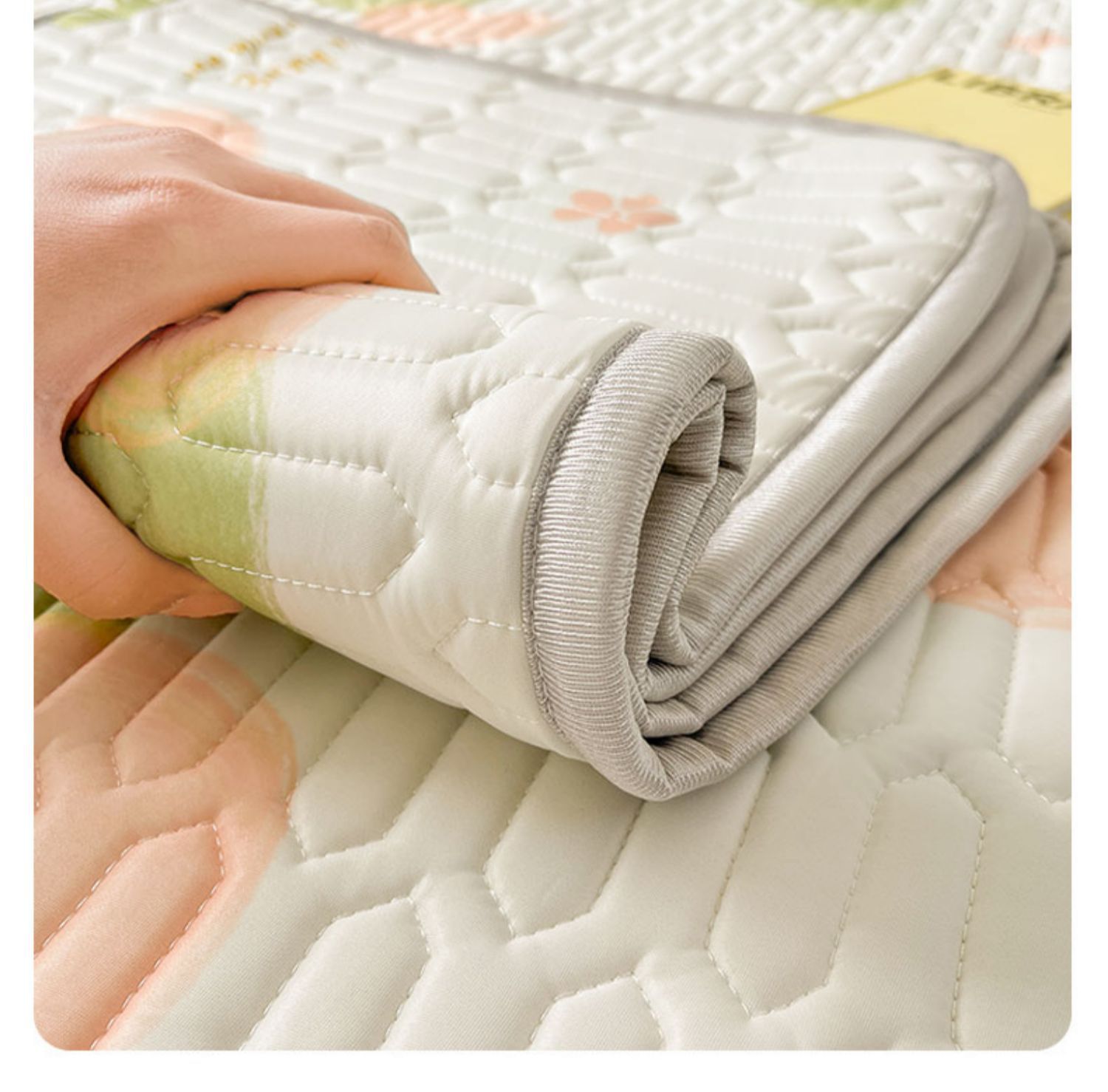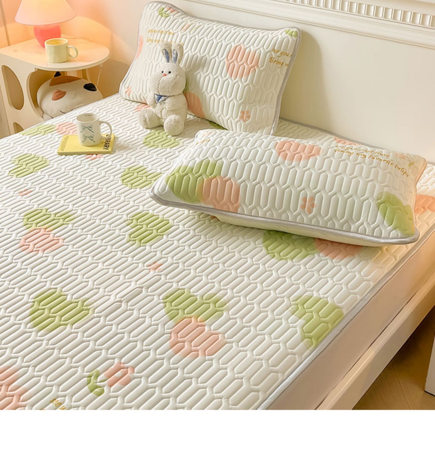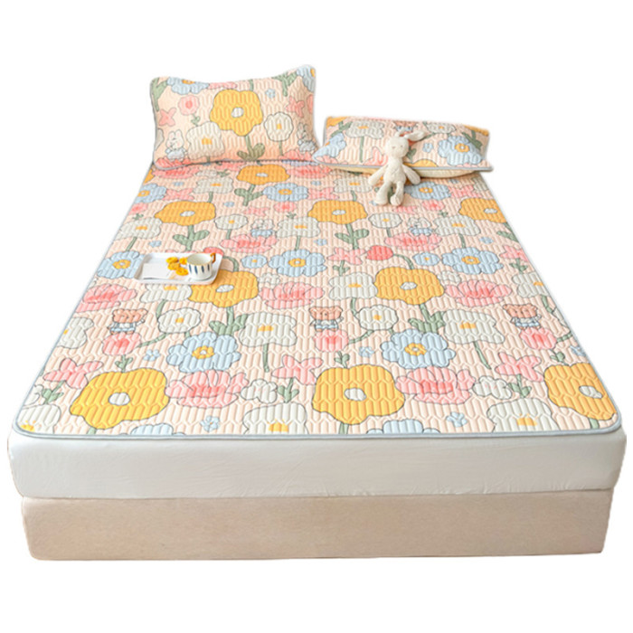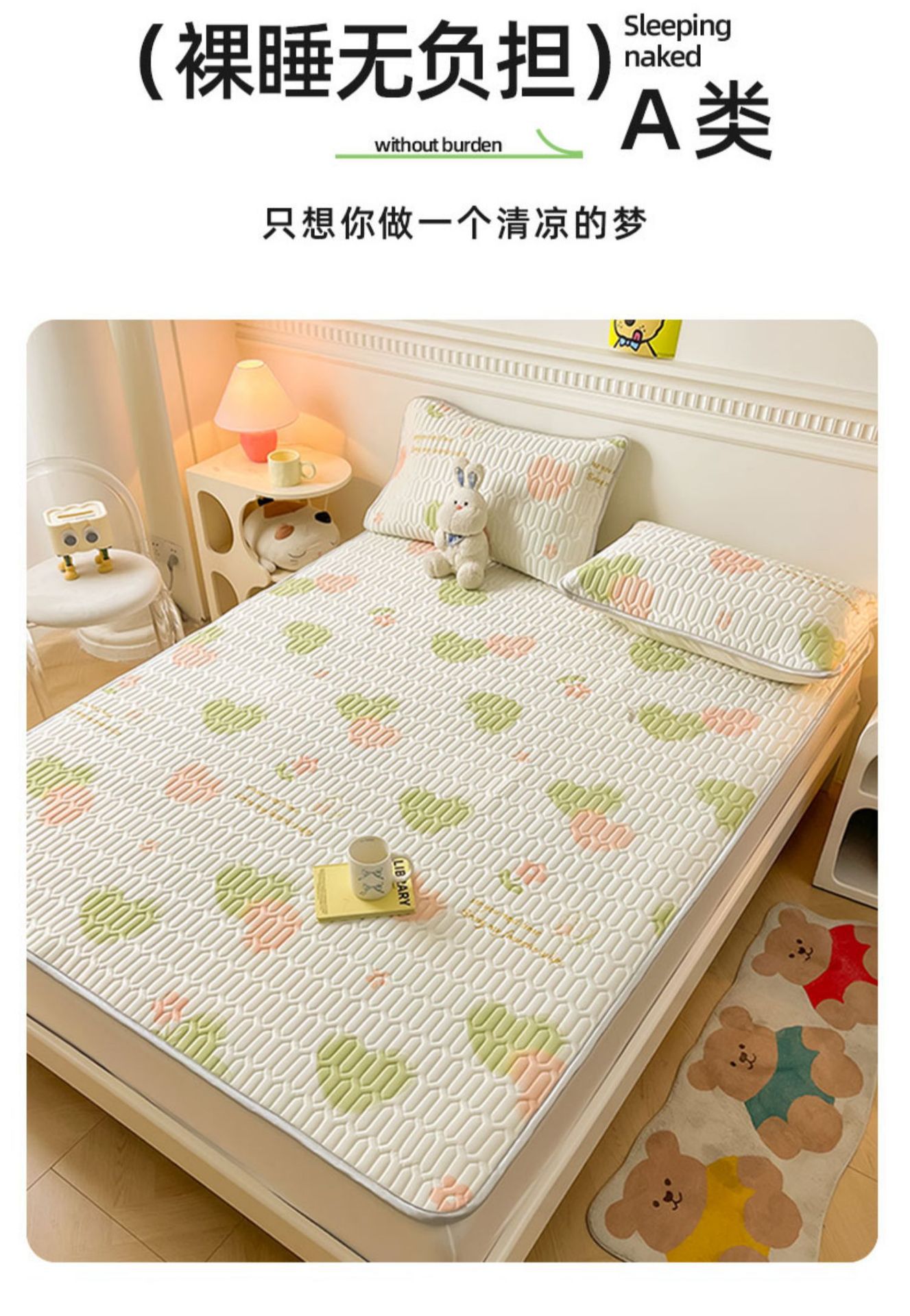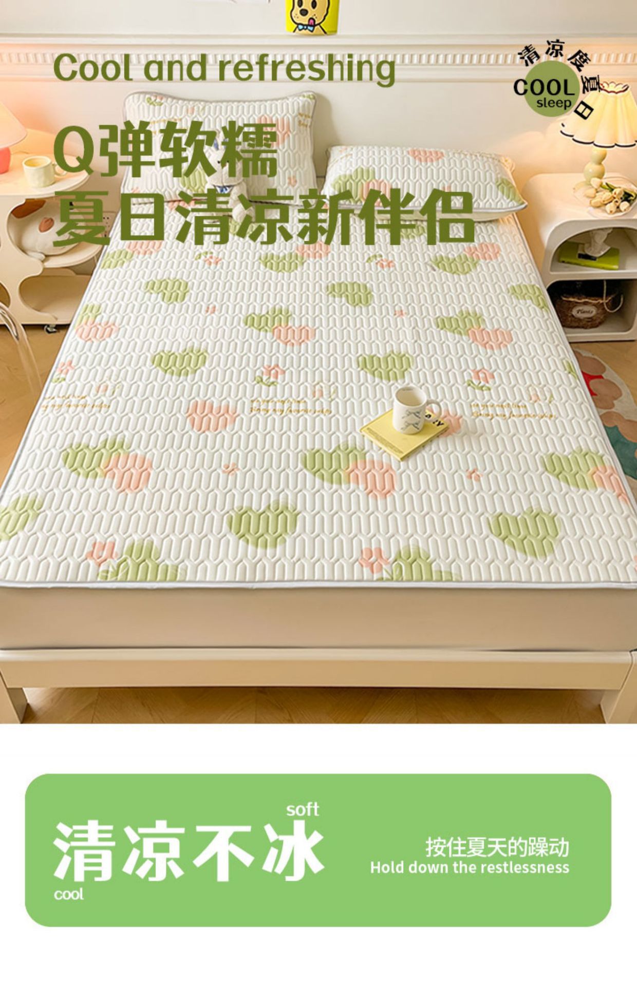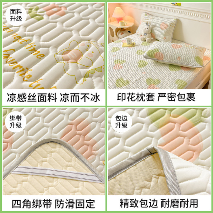 夏季冰絲乳膠涼蓆三件套印花可折曡軟涼蓆床墊兩用卡通小清新蓆子