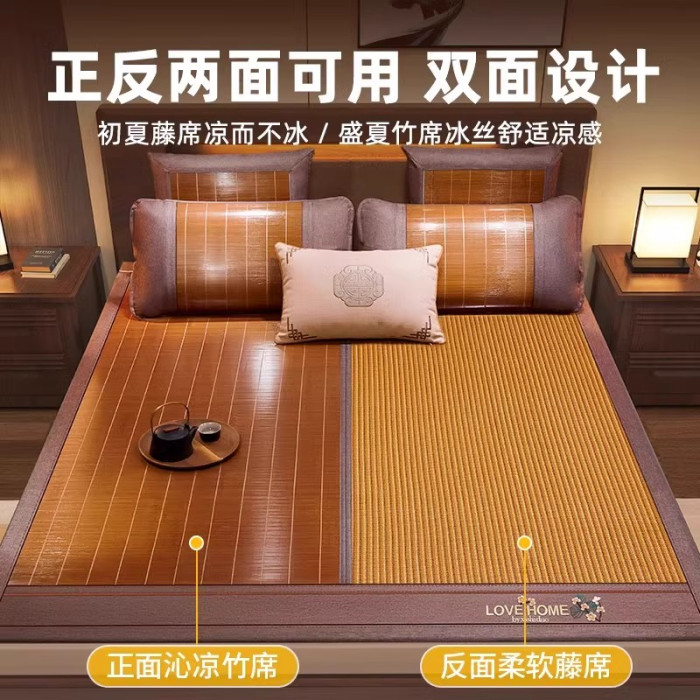 高級天然涼蓆碳化純竹蓆夏季冰絲草蓆子可折曡宿舍冬夏兩用雙面蓆