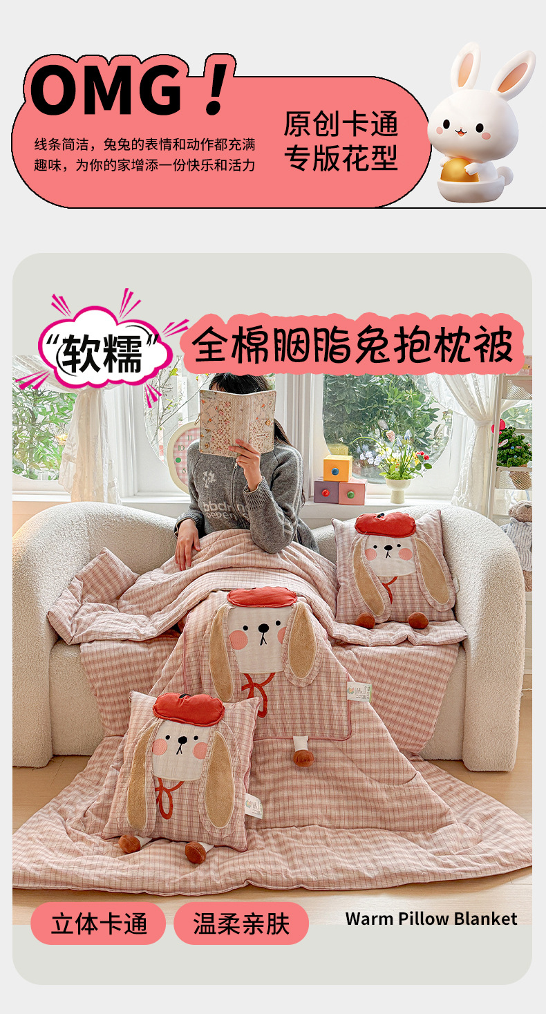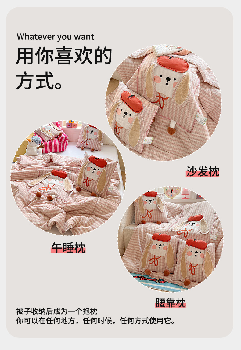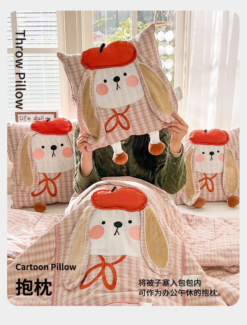 全棉抱枕被兩用二合一被子可愛加厚午睡辦公室枕頭被車用車用靠枕