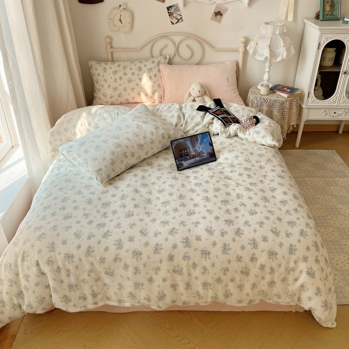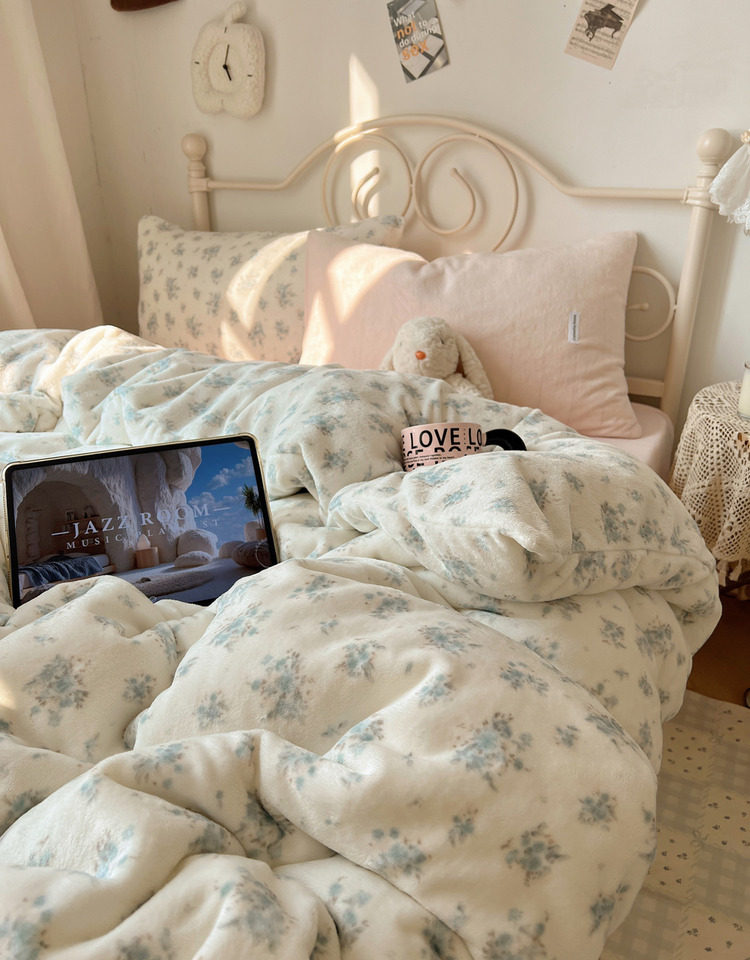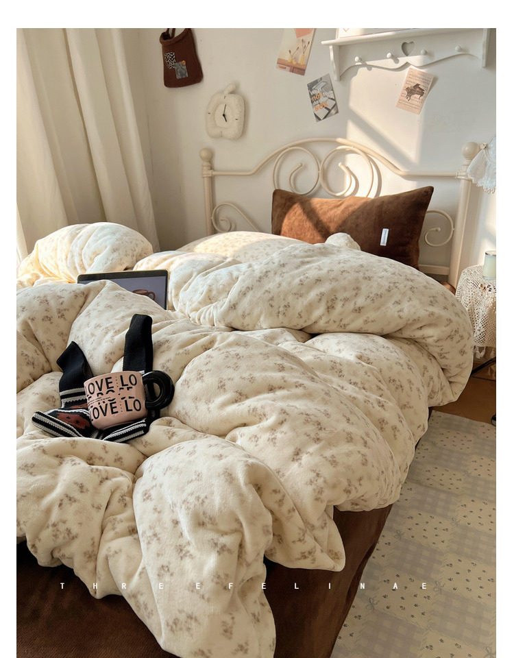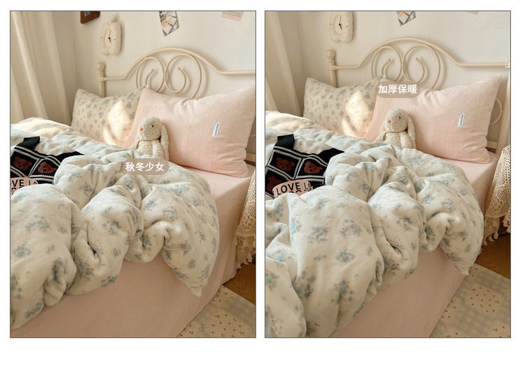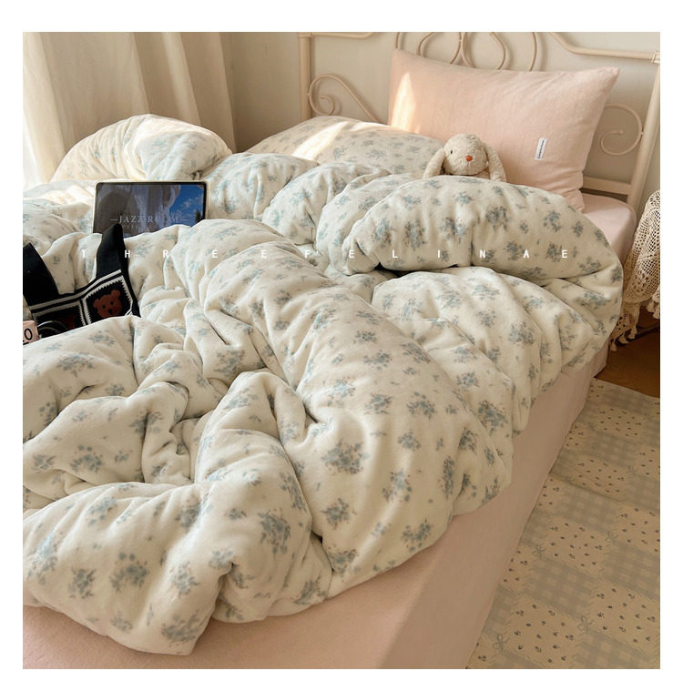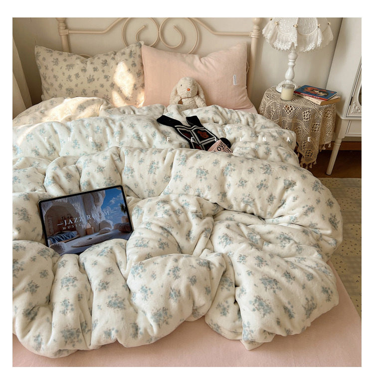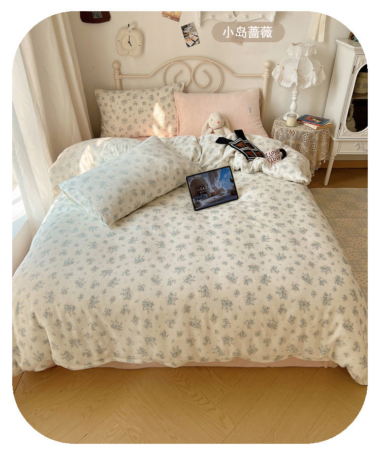 【花臉貓】小島薔薇!秋冬少女心親膚柔軟碎花加厚牛奶絨四件套