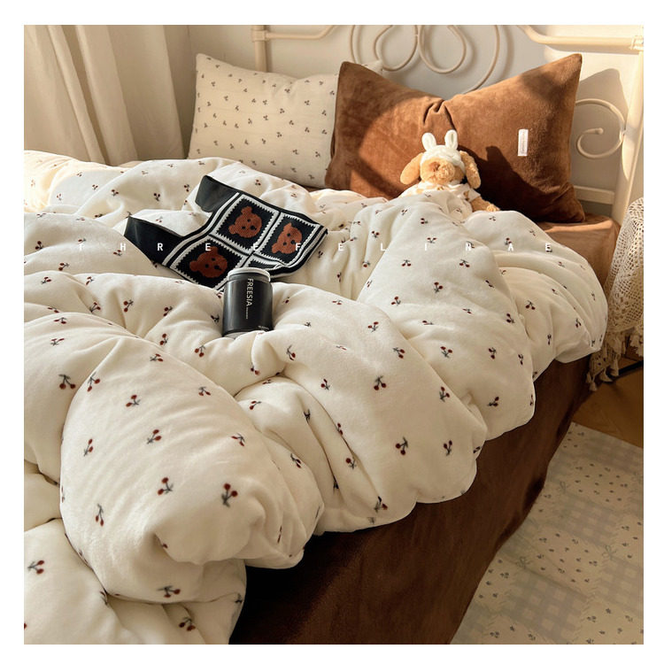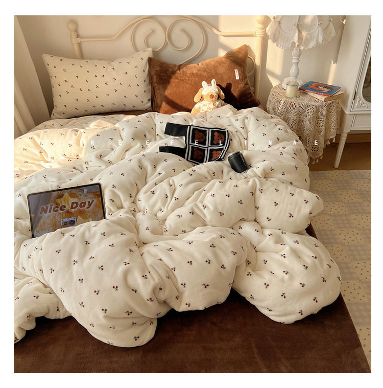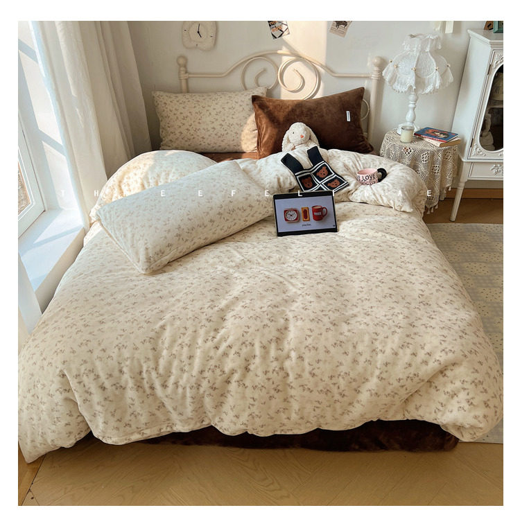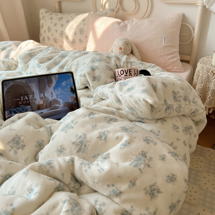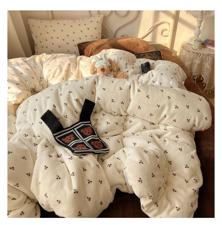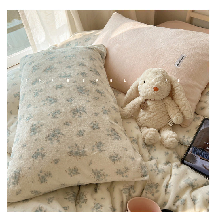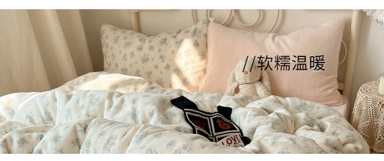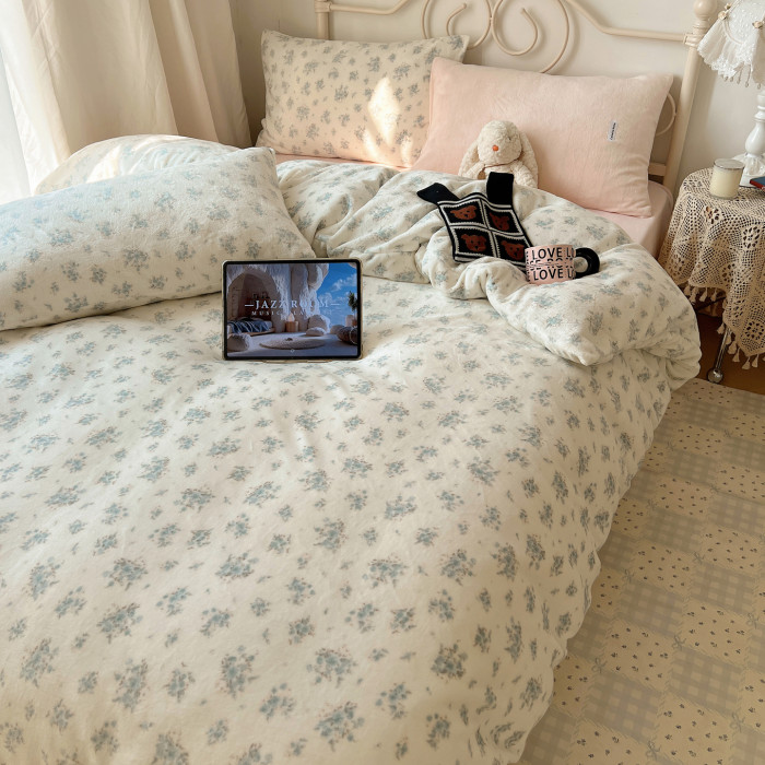 【花臉貓】小島薔薇!秋冬少女心親膚柔軟碎花加厚牛奶絨四件套