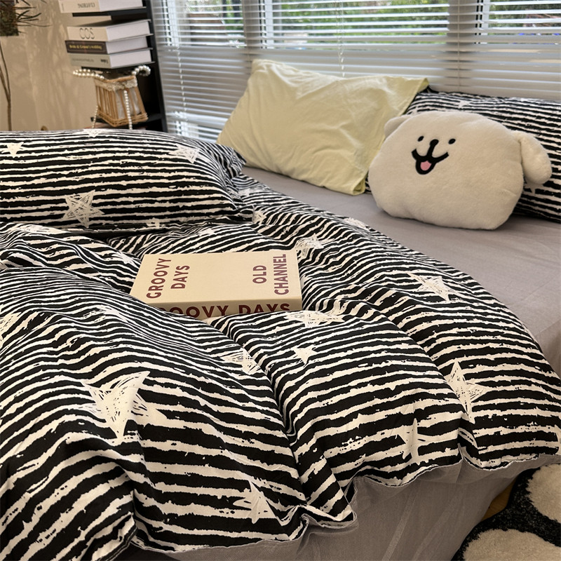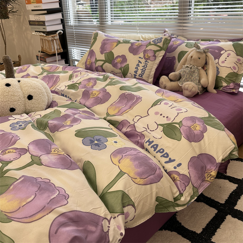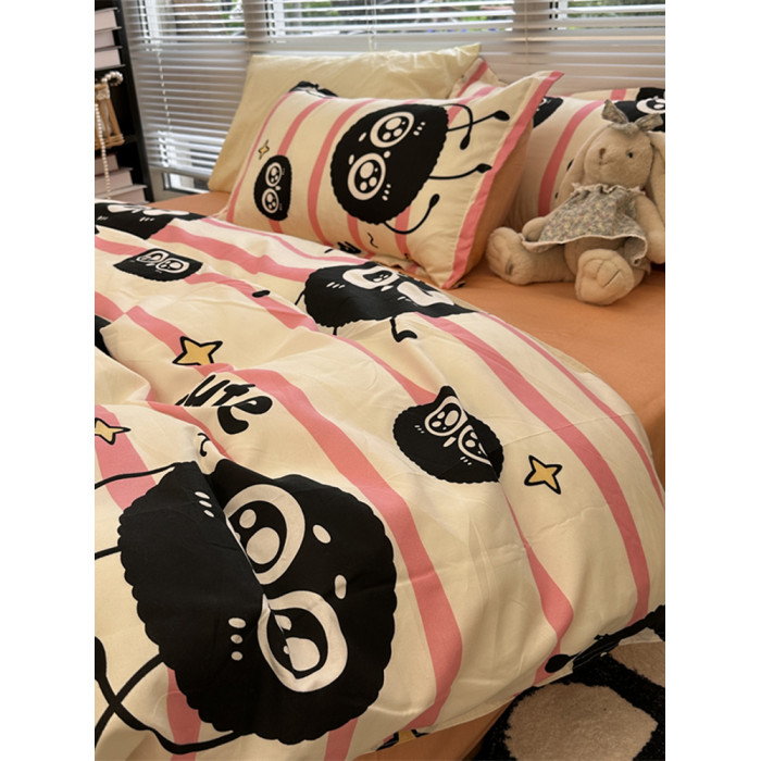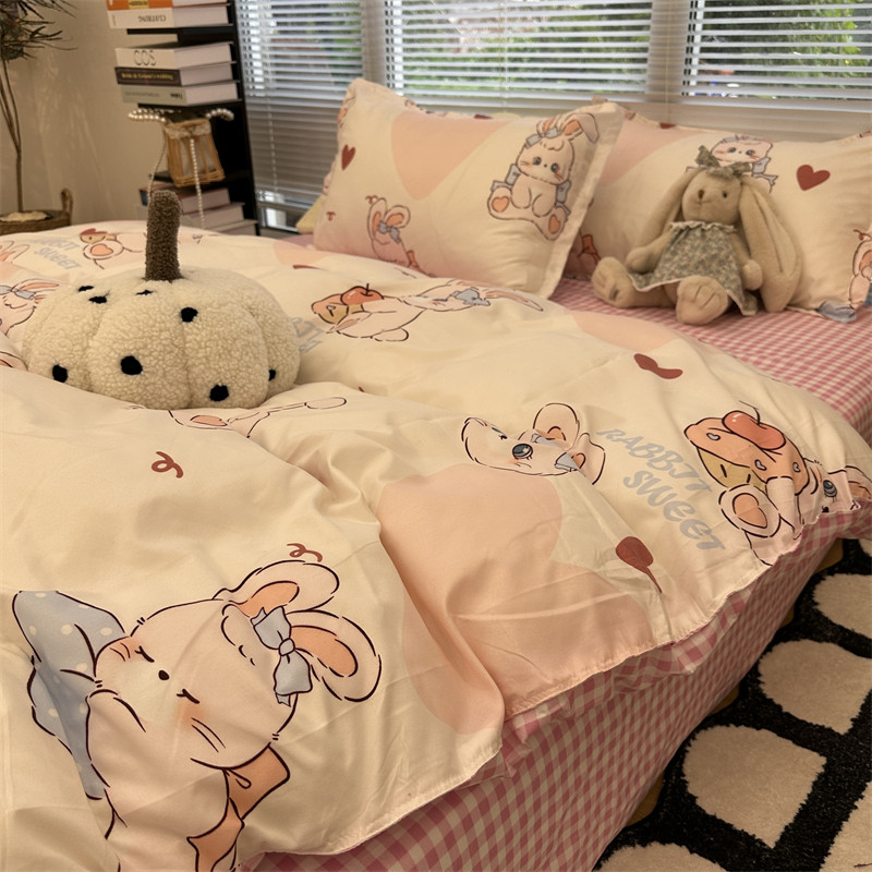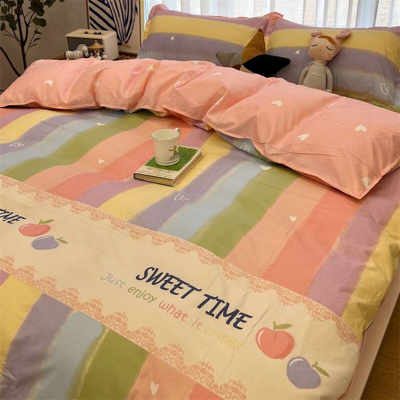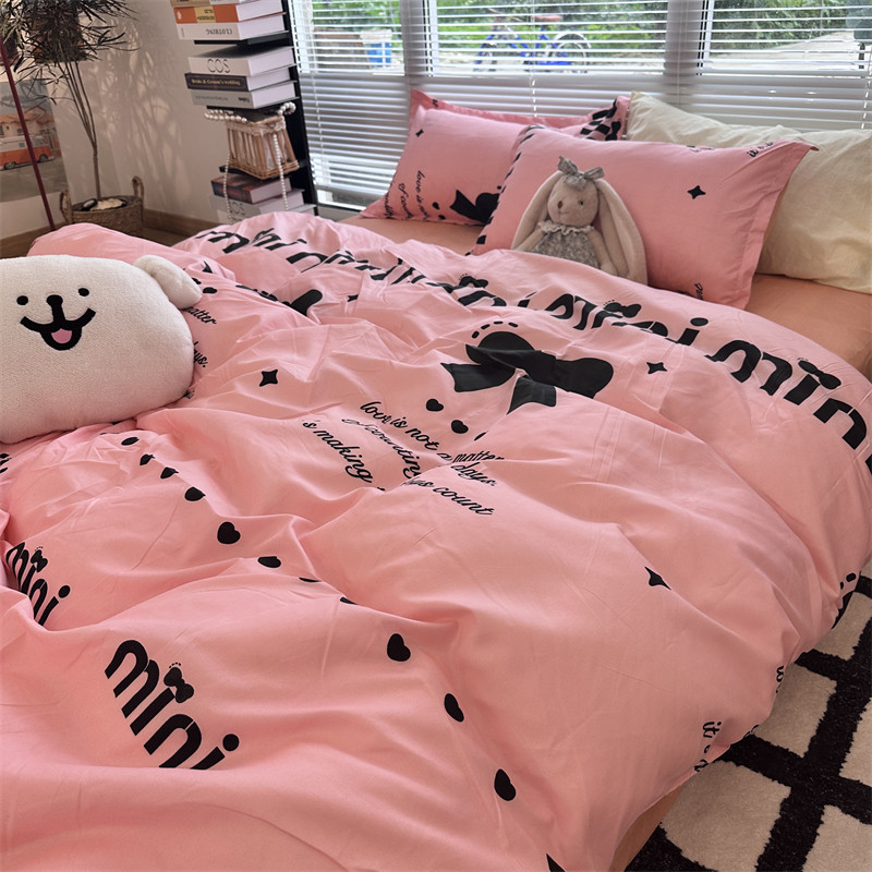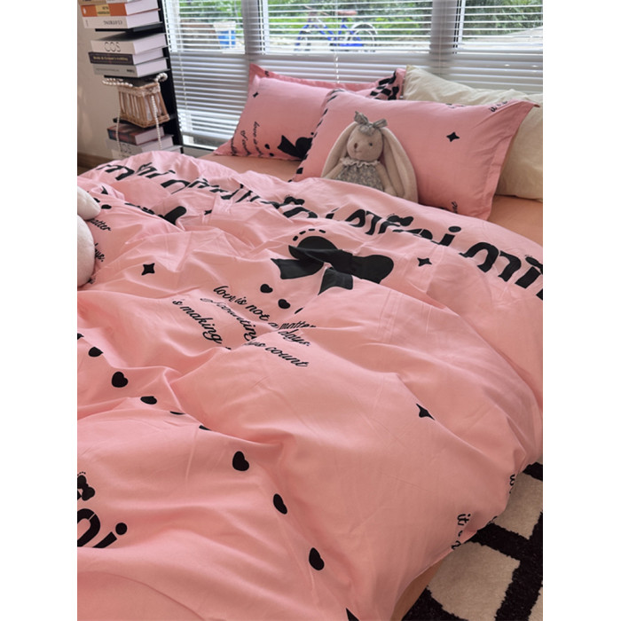 ins風床上四件套水洗棉被套粉色少女心蝴蝶結學生宿捨床單三件套