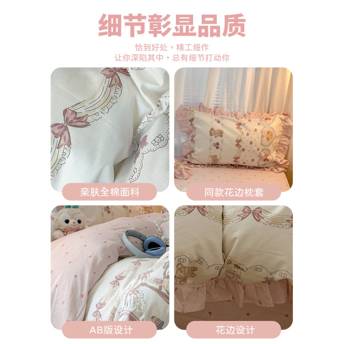 洛麗塔公主風純棉花邊床上四件套全棉少女床單宿捨被套床品三件套
