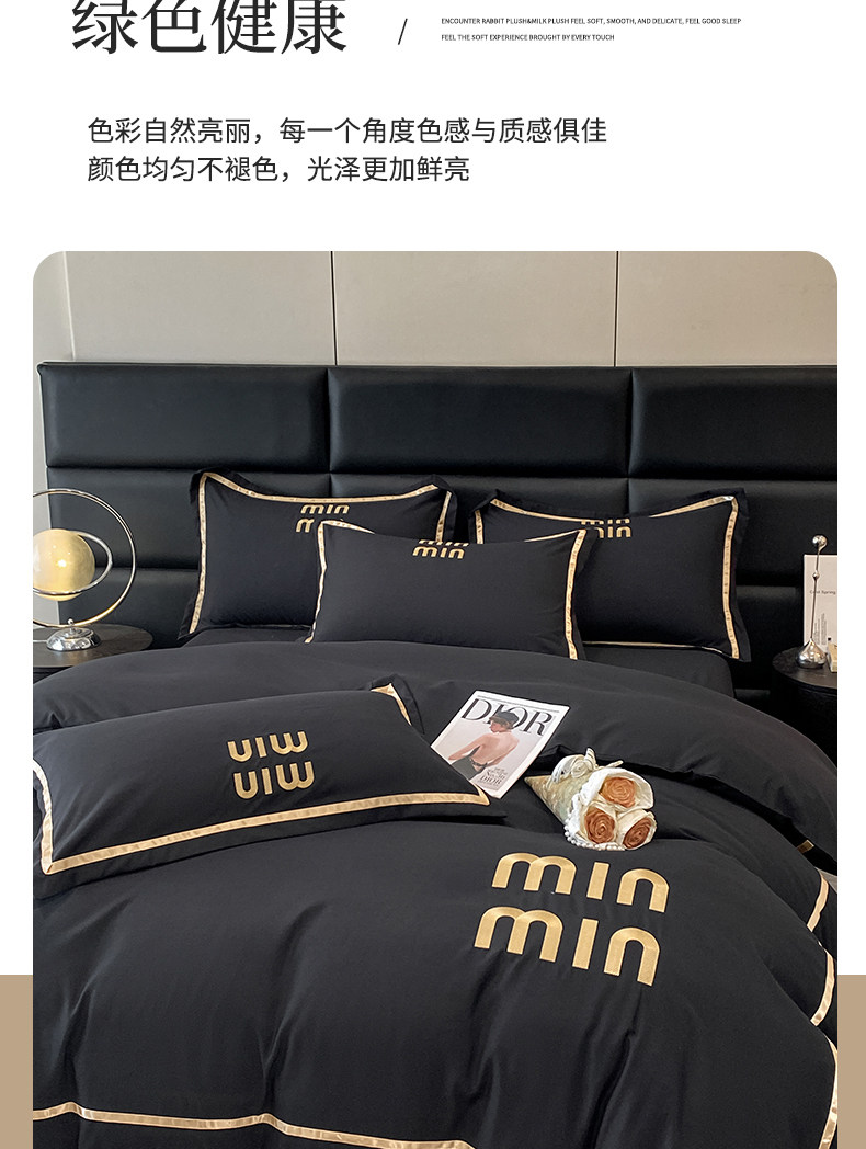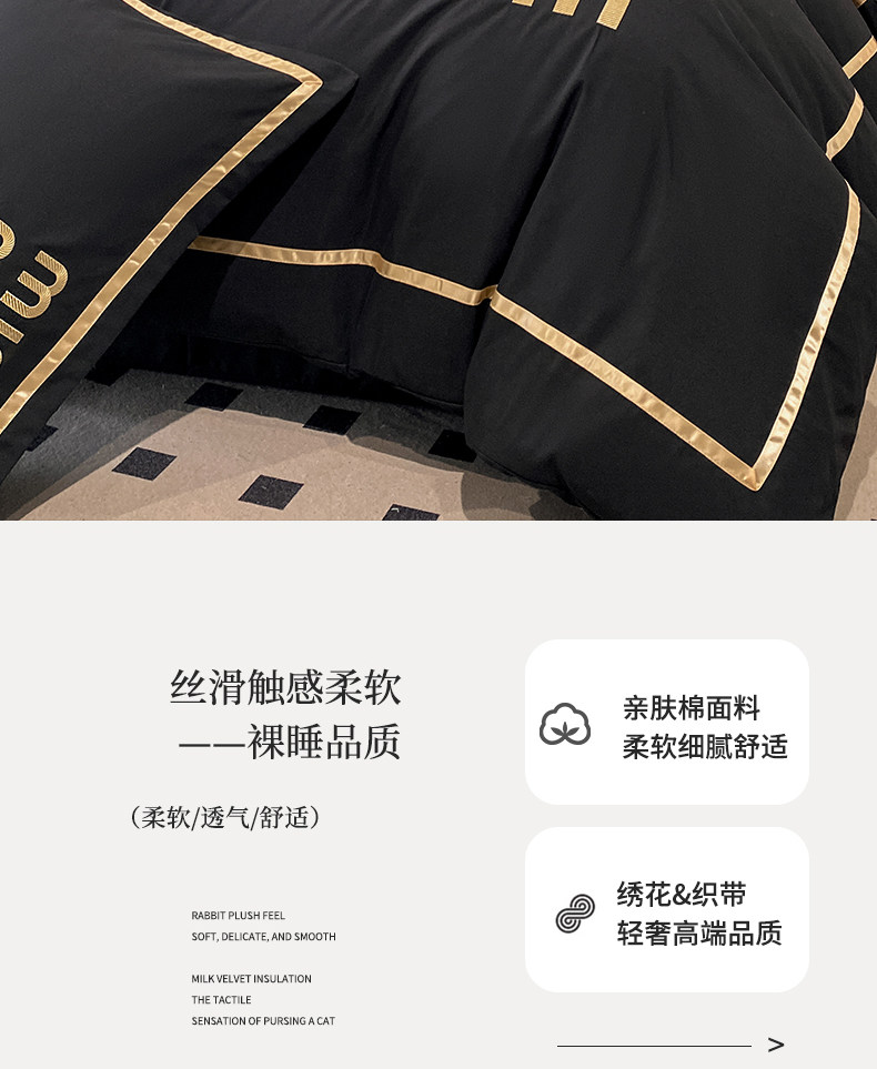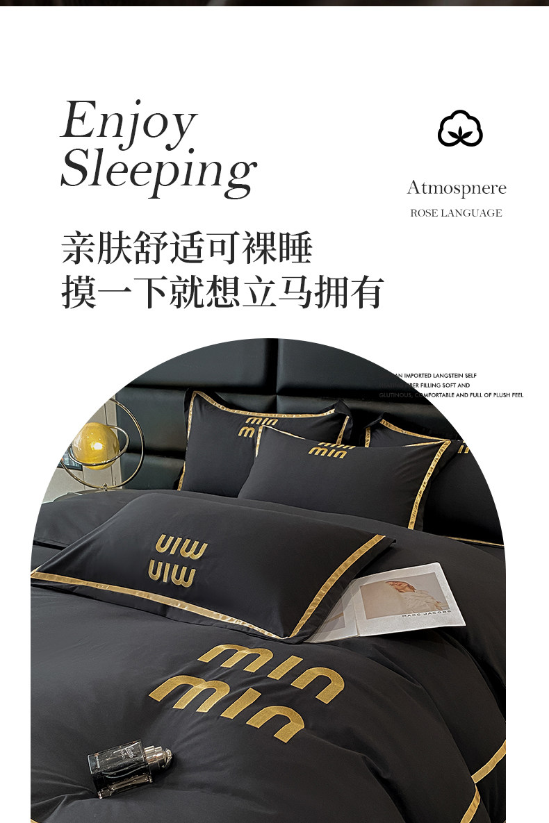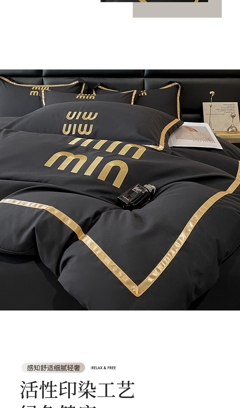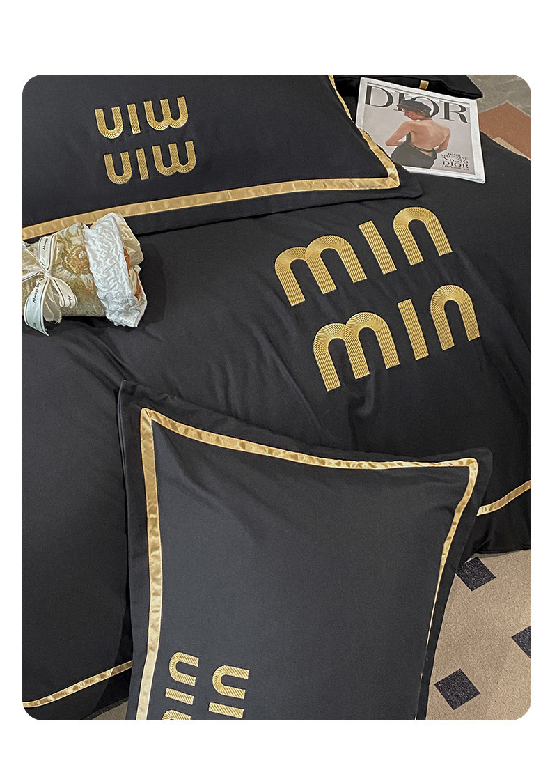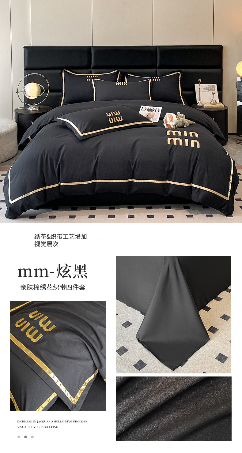 輕奢高級四件套非全棉純棉被套床單床包床罩床品男生純黑色