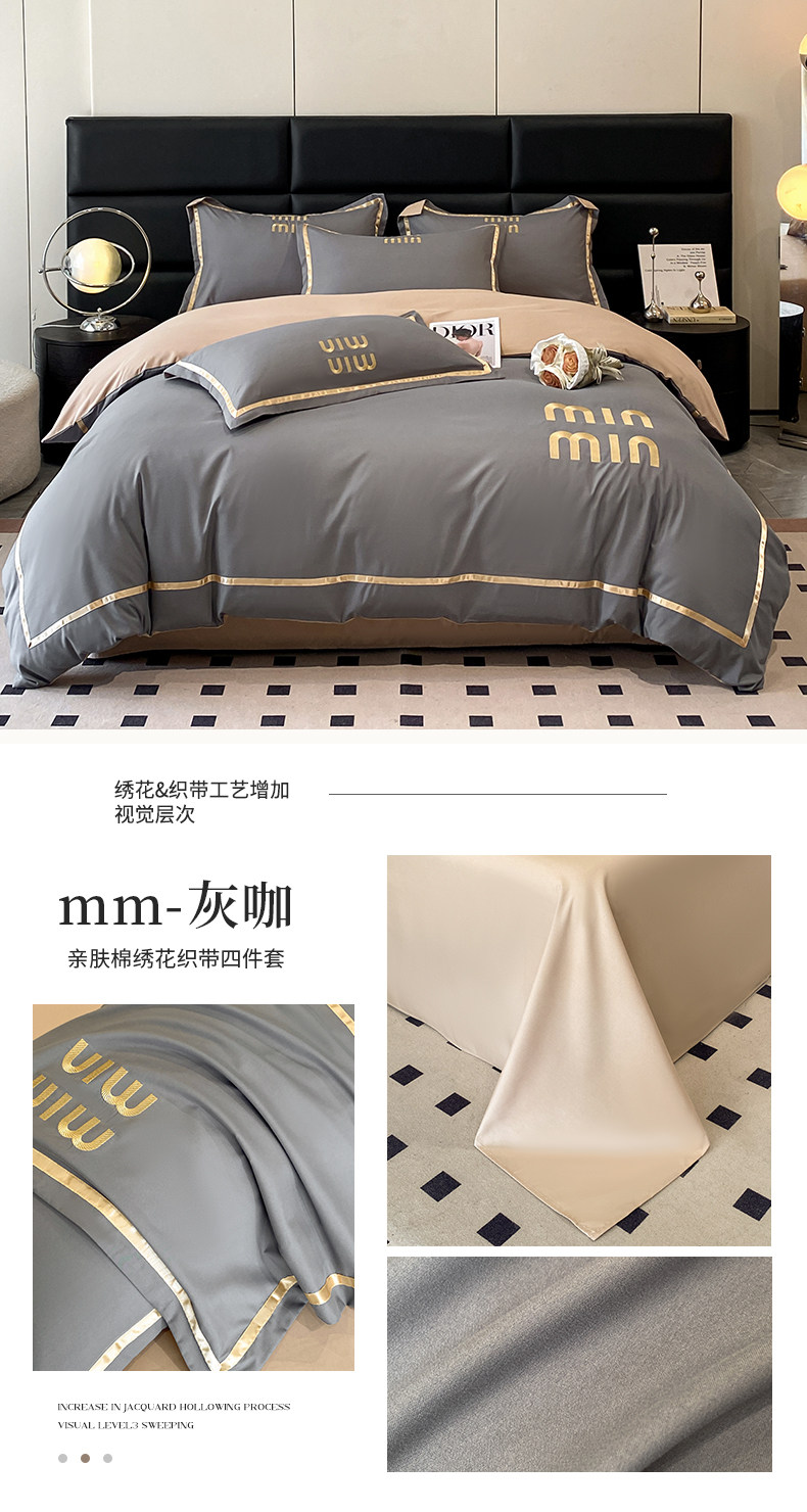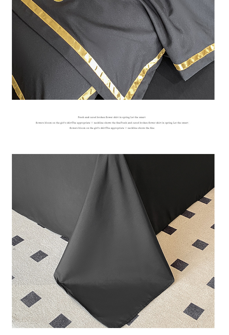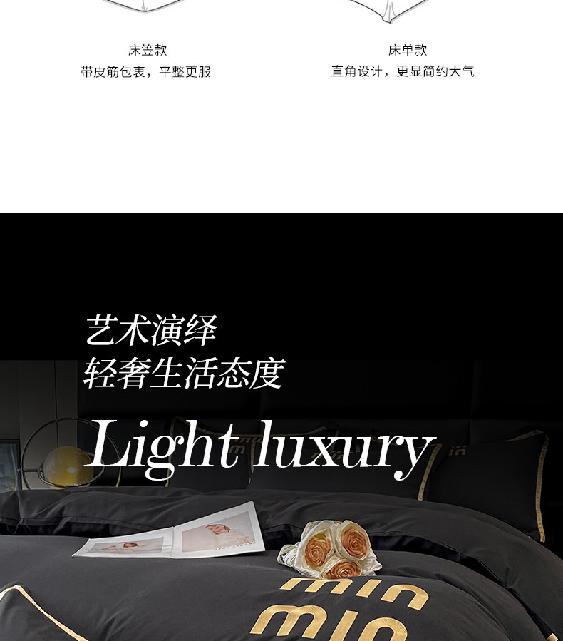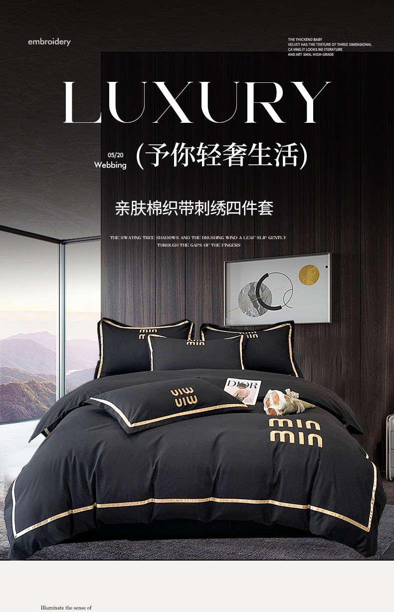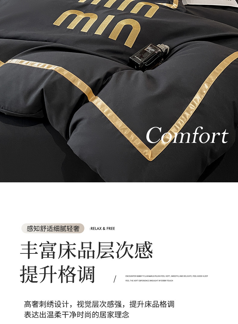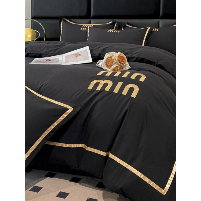 輕奢高級四件套非全棉純棉被套床單床包床罩床品男生純黑色