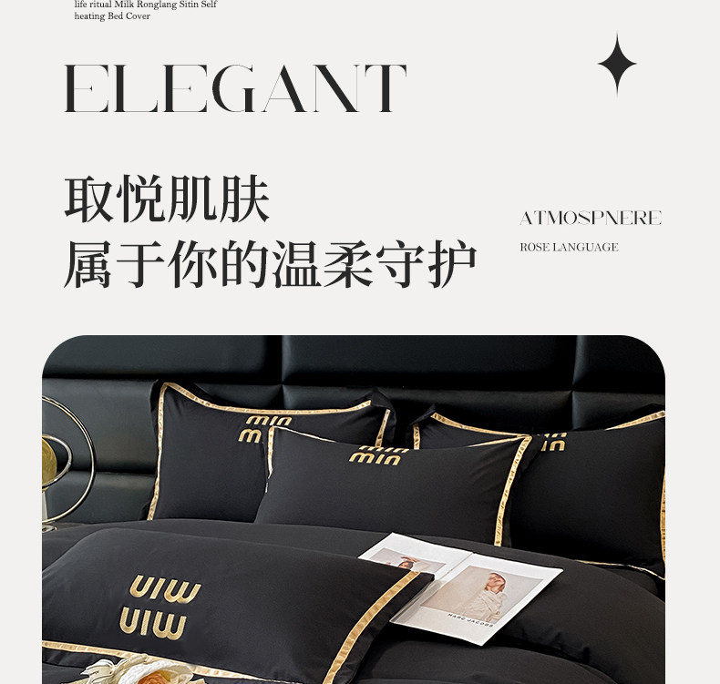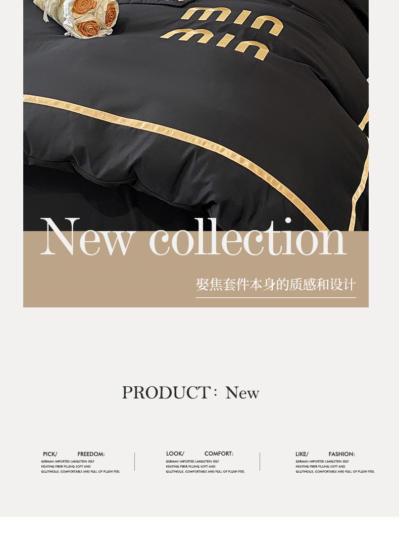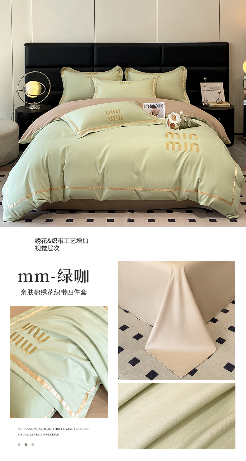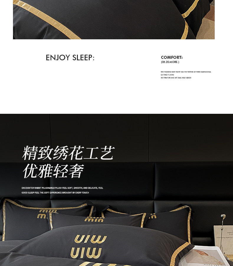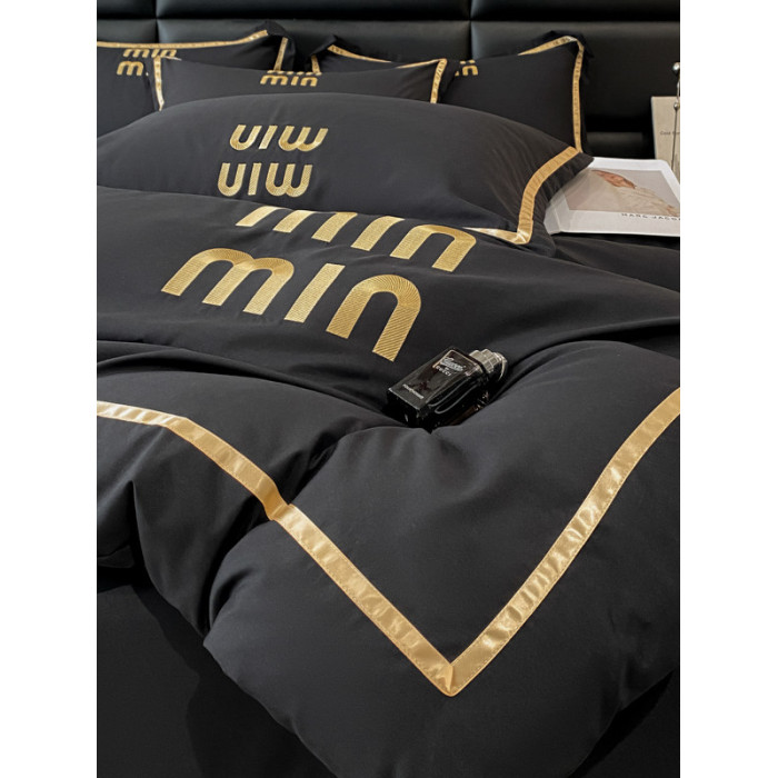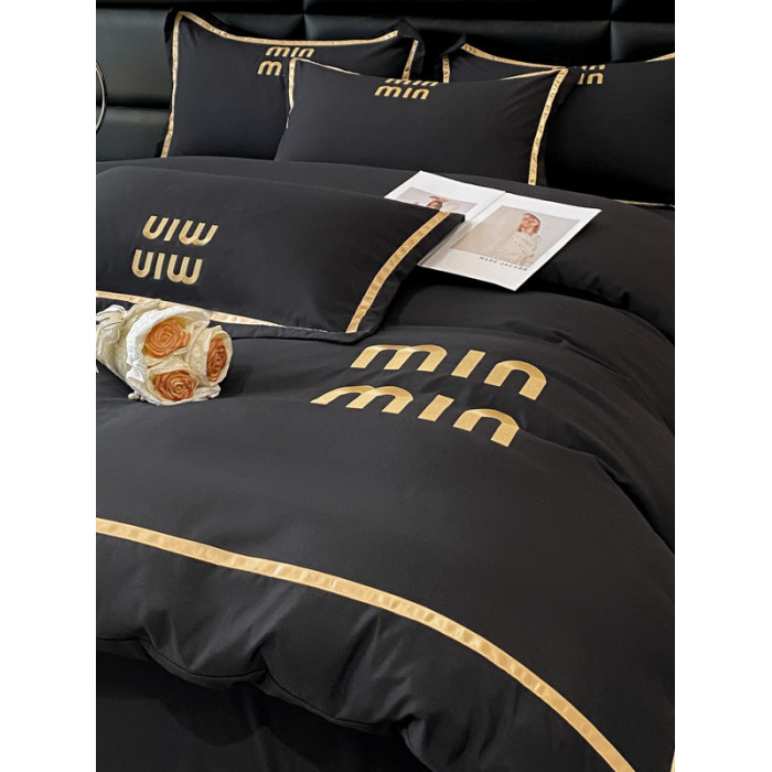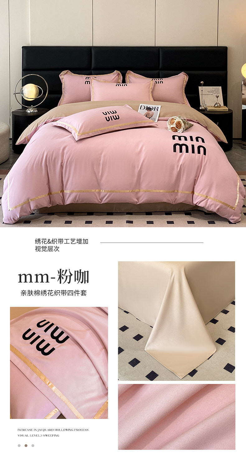 輕奢高級四件套非全棉純棉被套床單床包床罩床品男生純黑色