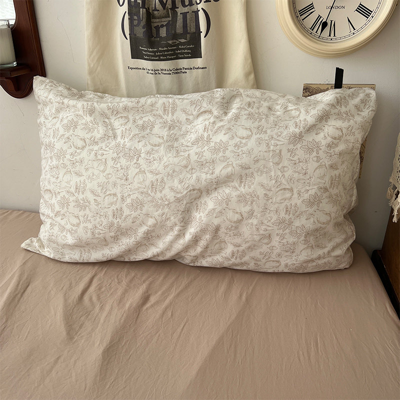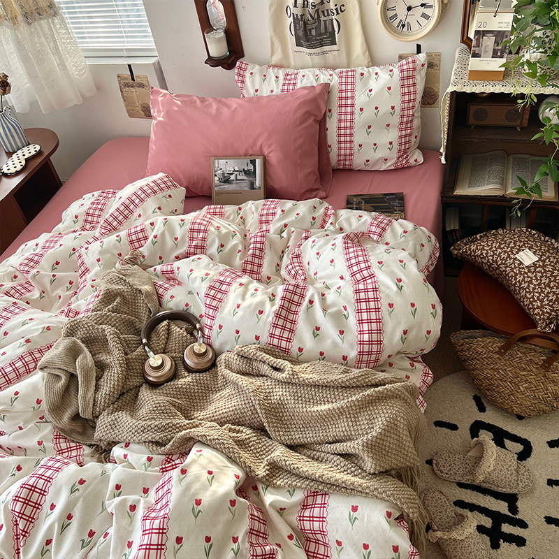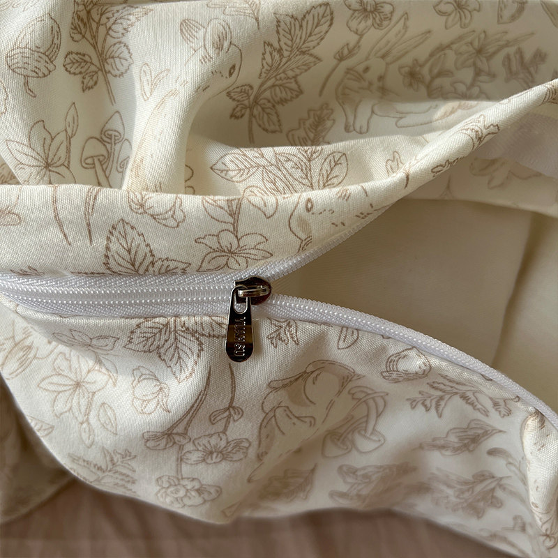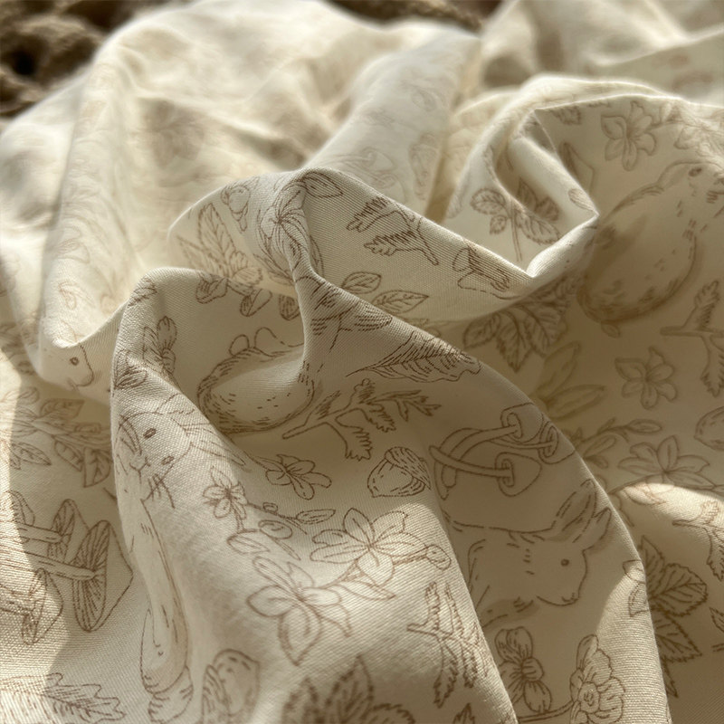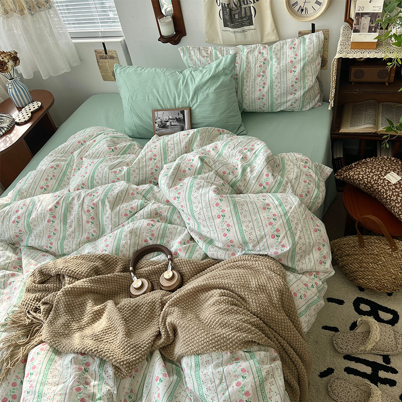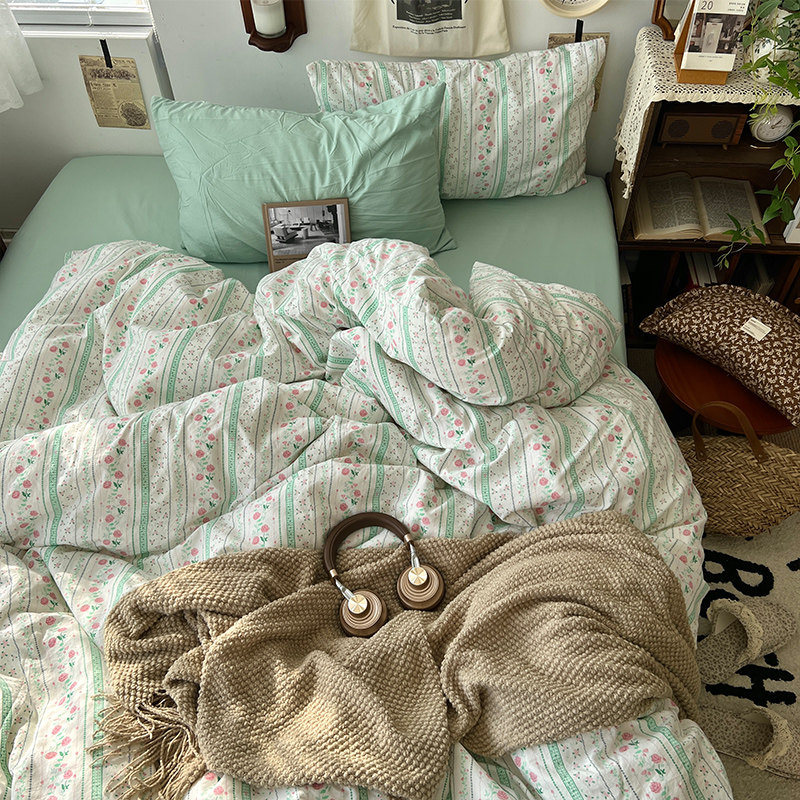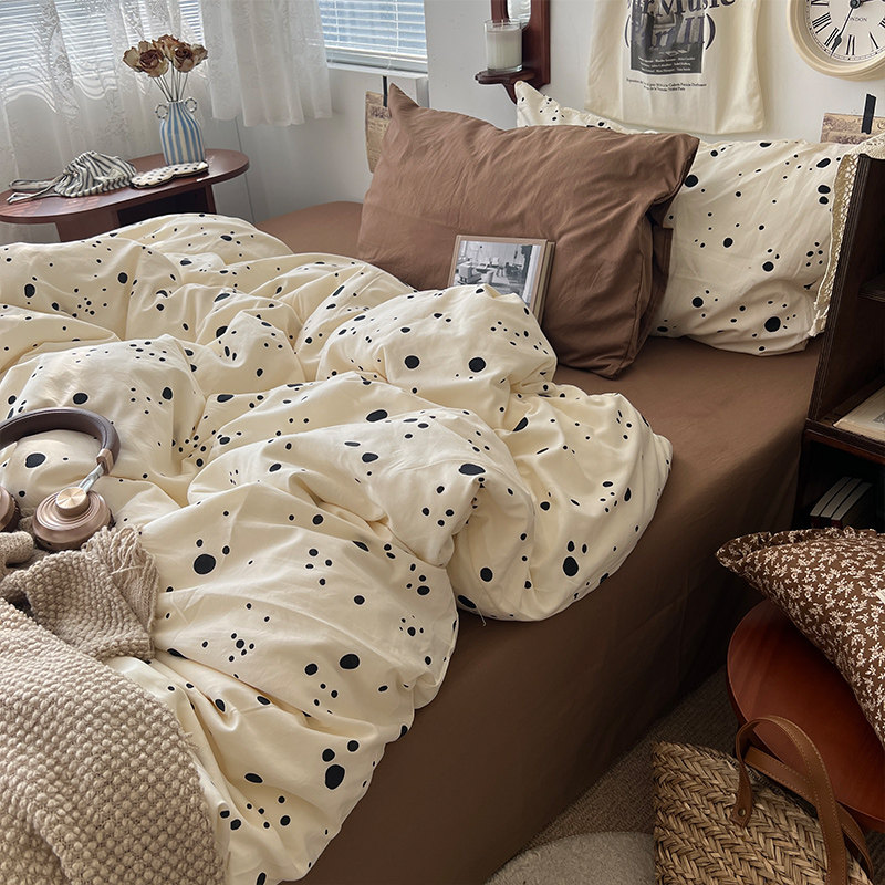 法式風ins復古奶茶水墨花小兔四件套水洗棉1.8床單被套學生三件套