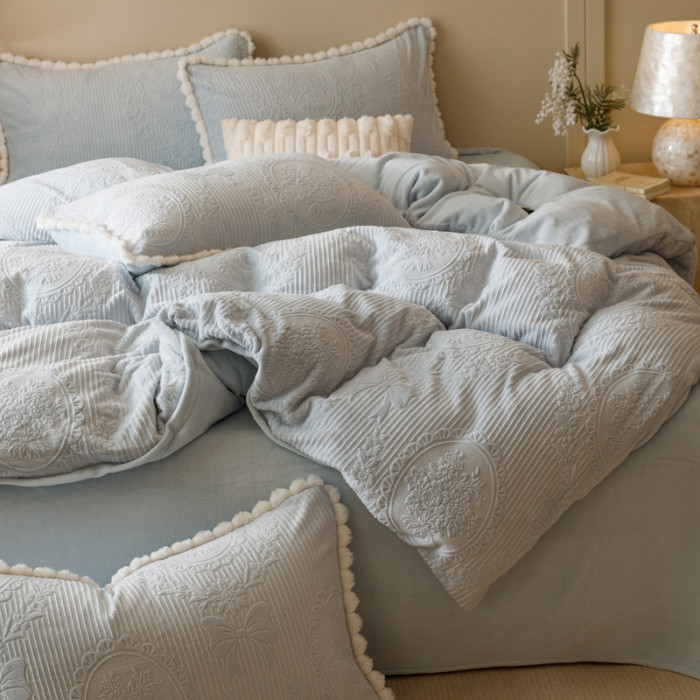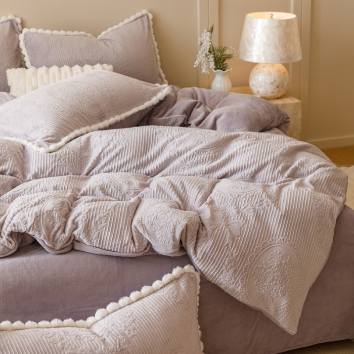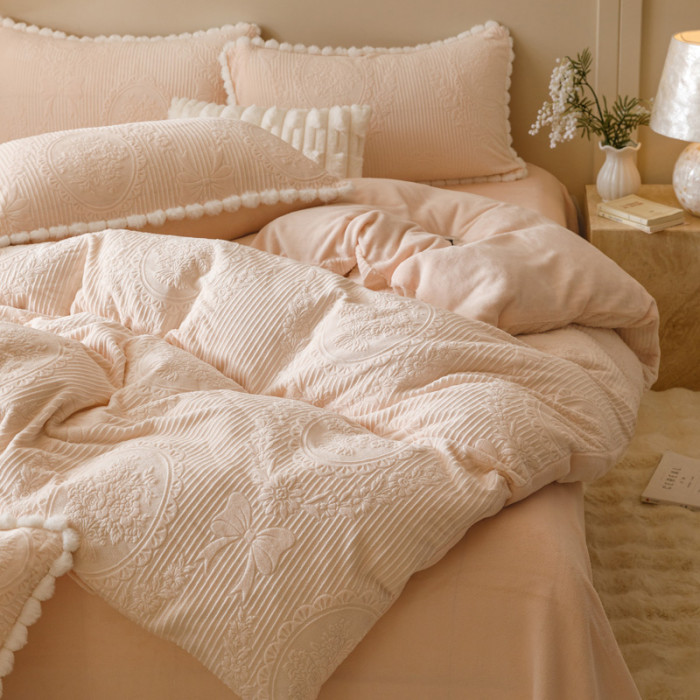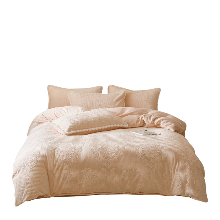 冬加厚雕花牛奶絨床上四件套A類保暖抗靜電被套加密法蘭絨珊瑚絨