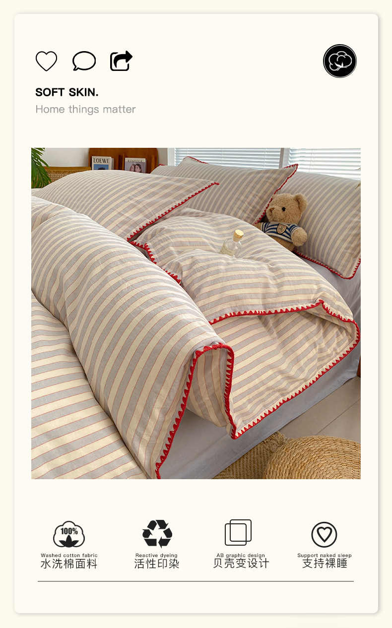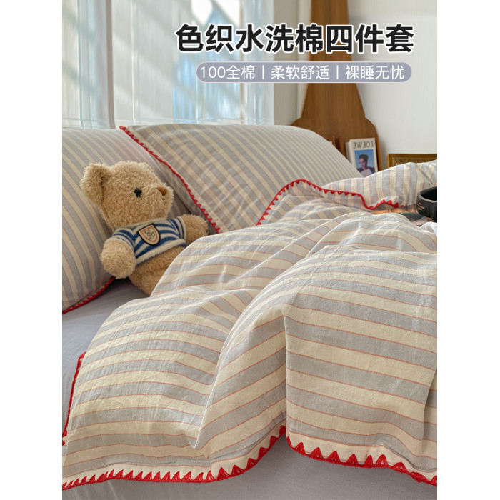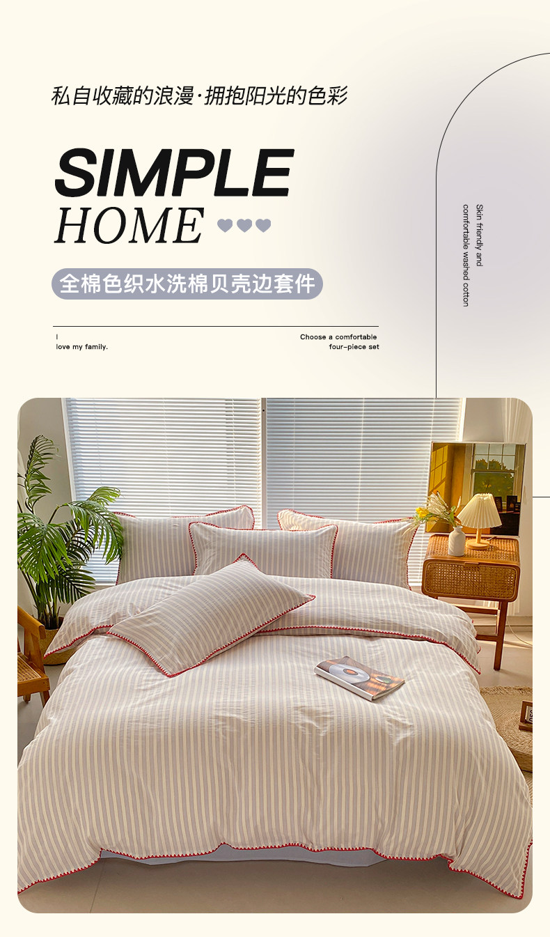 簡約高級全棉水洗棉床上四件套純棉被套床單床包款新款床品三件套