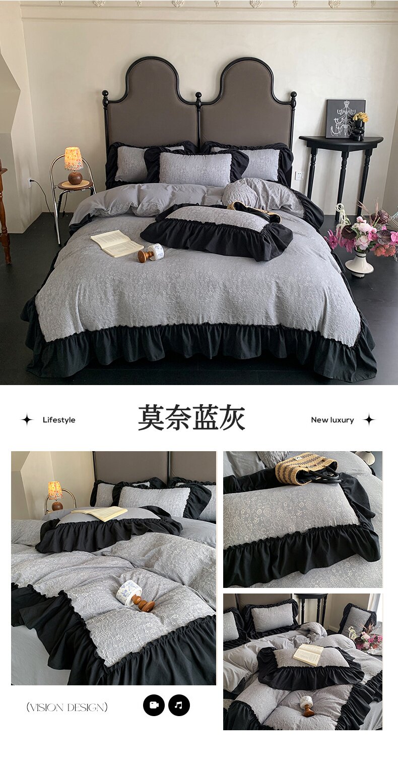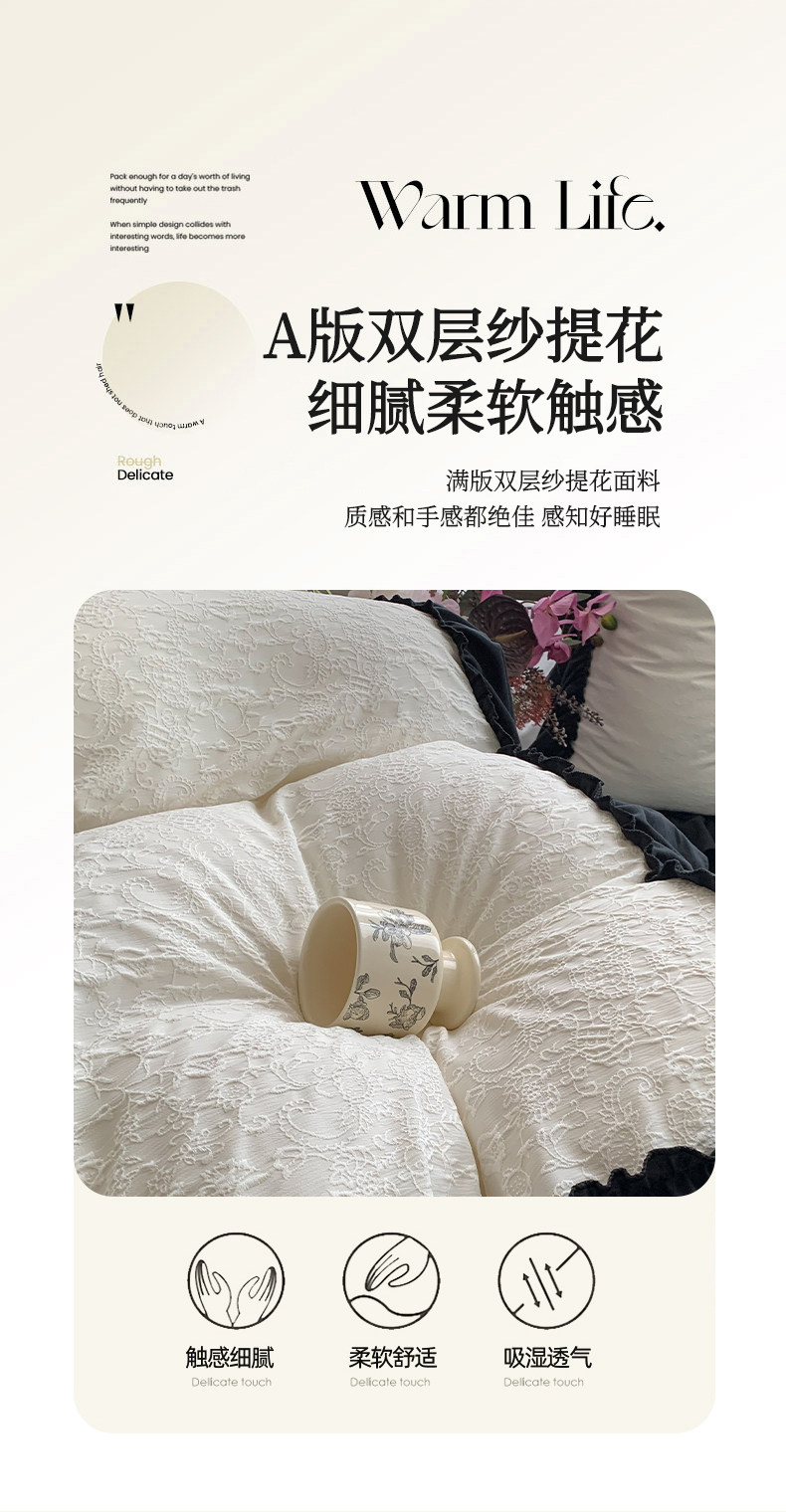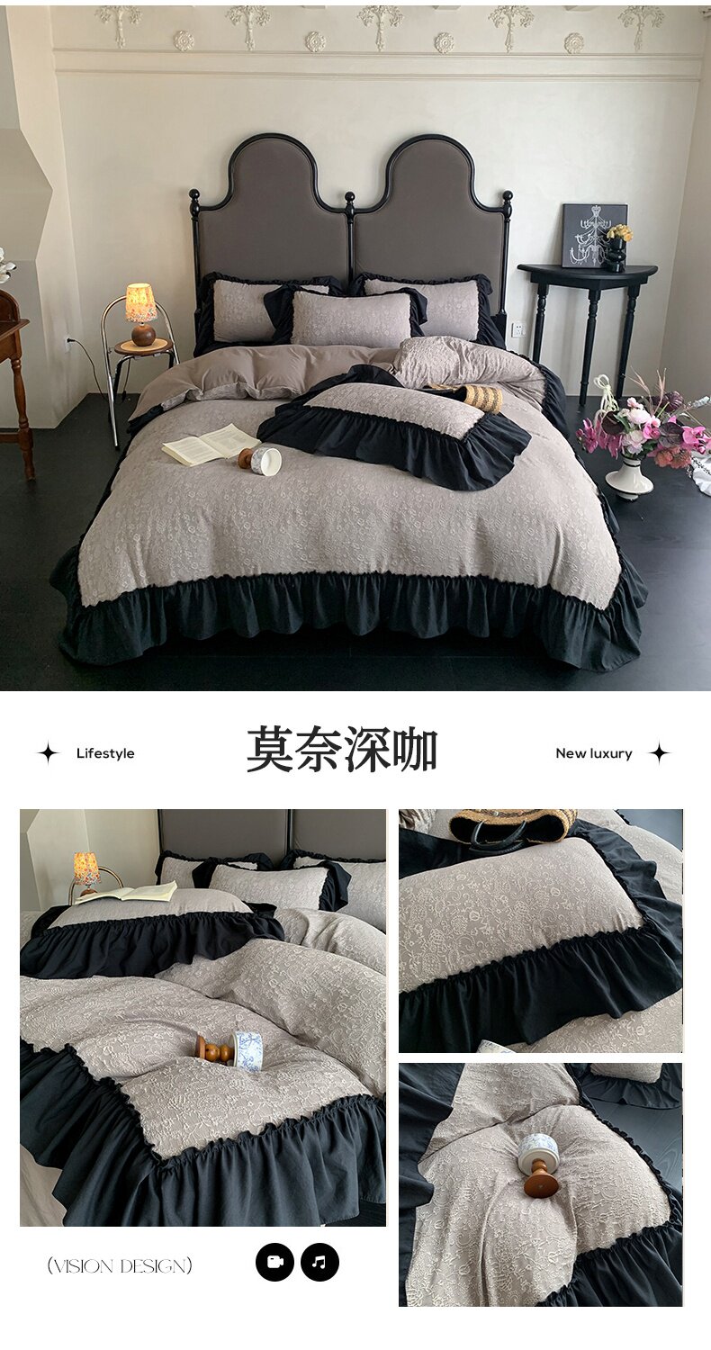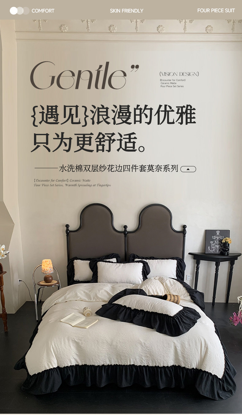 水洗棉雙層紗提花四件套2026新款非純棉全棉花邊被套床單床上用品