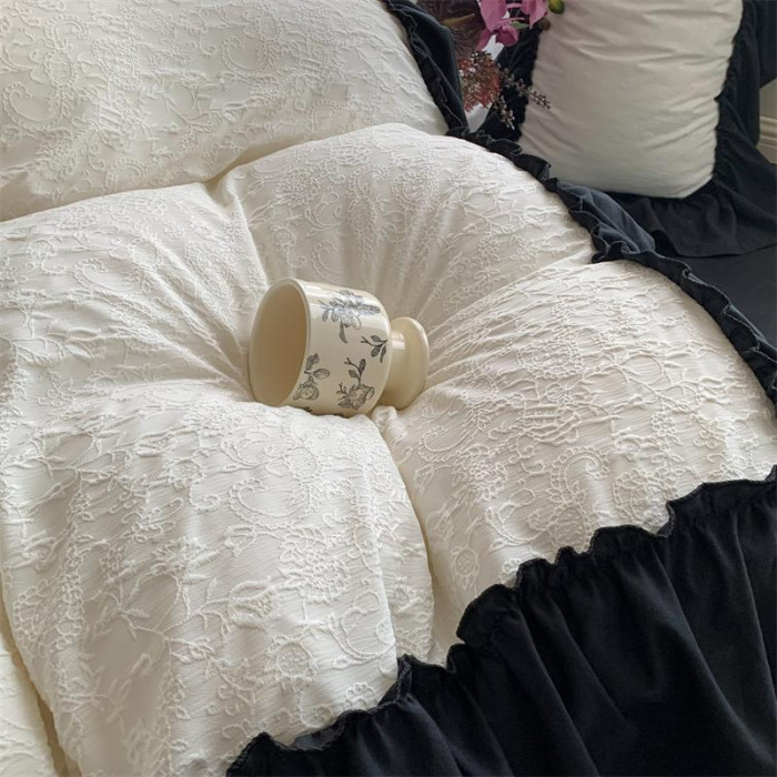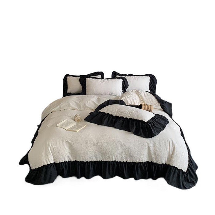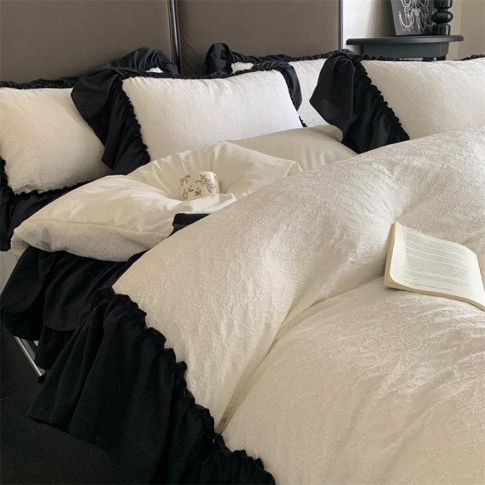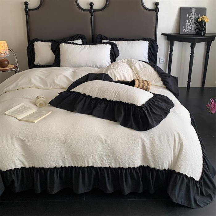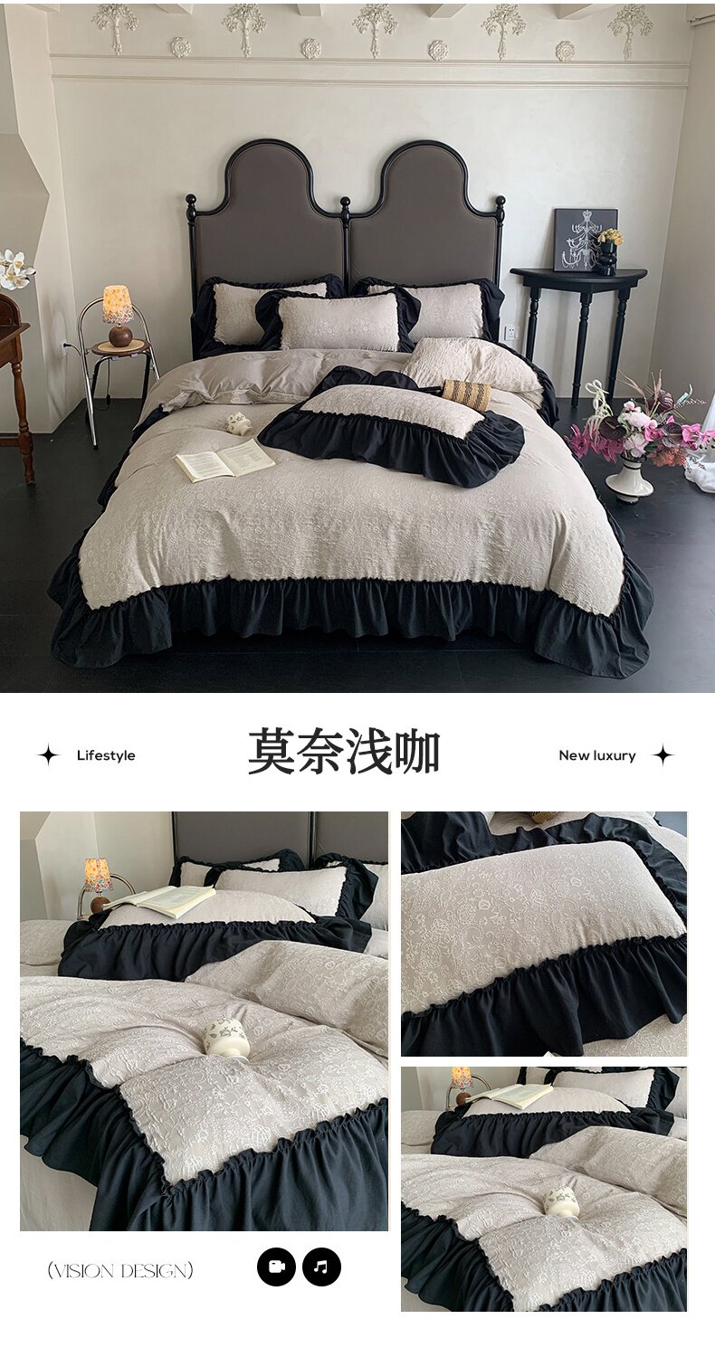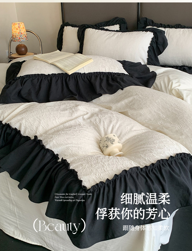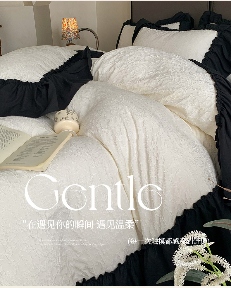水洗棉雙層紗提花四件套2026新款非純棉全棉花邊被套床單床上用品