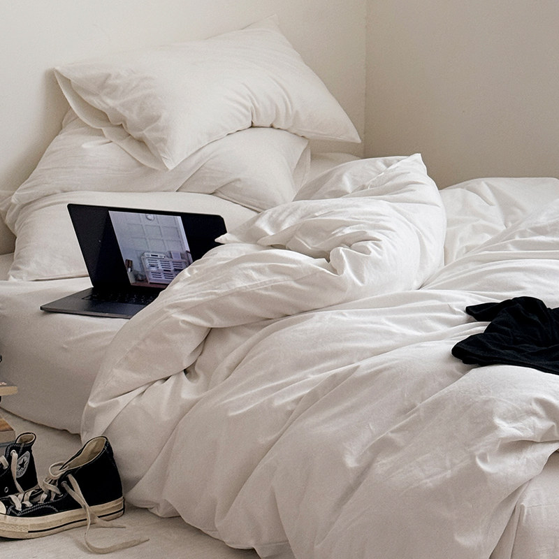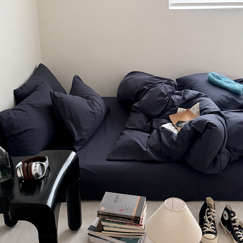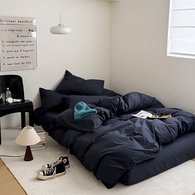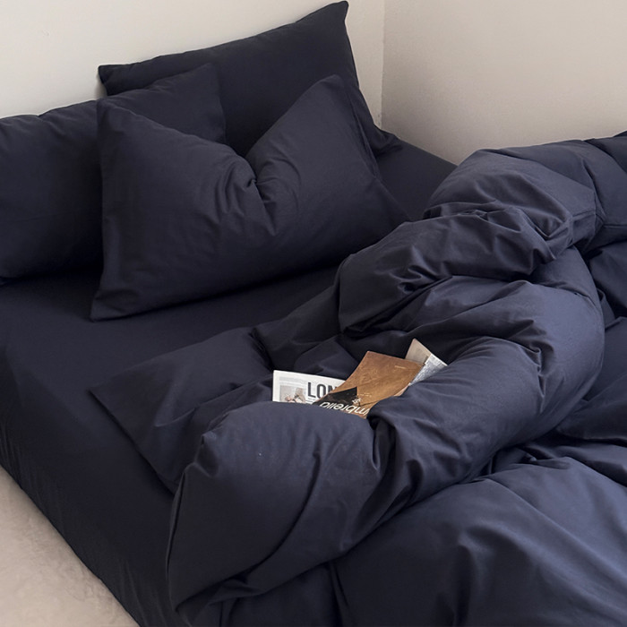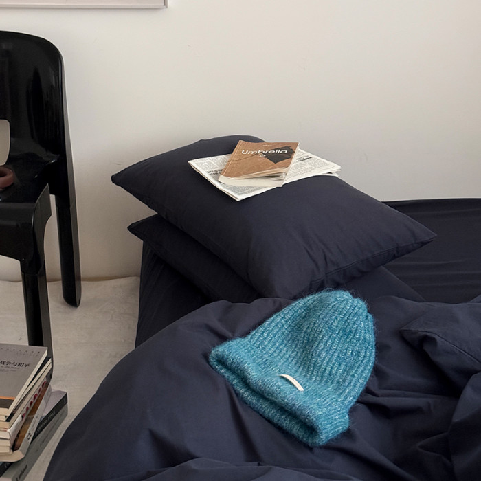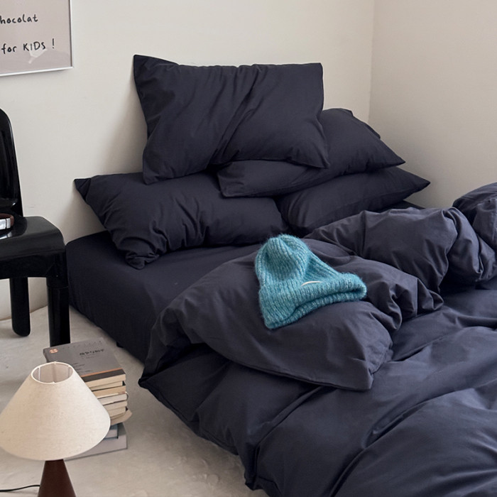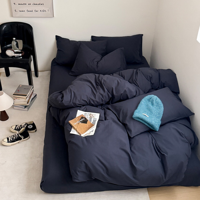 ins高級感藍色四件套全棉純水洗棉床品被套床單床包款宿捨三件套