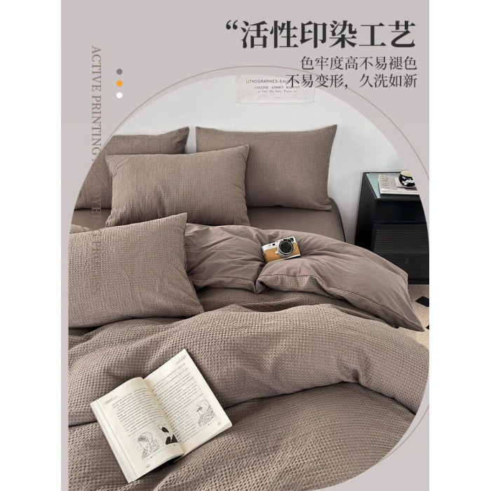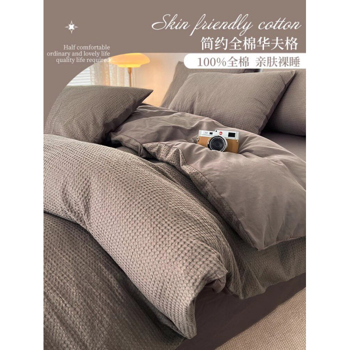 A類純棉華夫格床上四件套100全棉輕奢高級簡約床品床單被套三件套