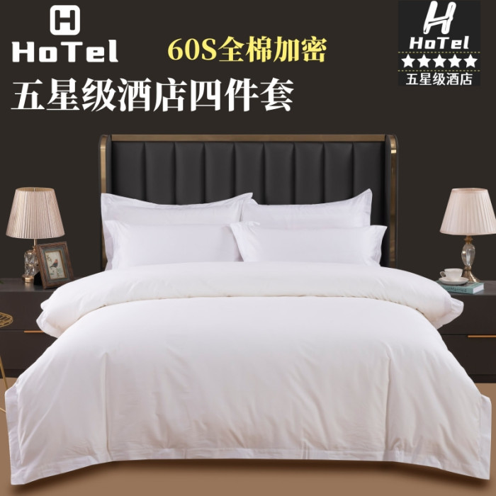 五星級酒店床品四件套全棉純棉白色賓館民宿專用床上用品布草被套