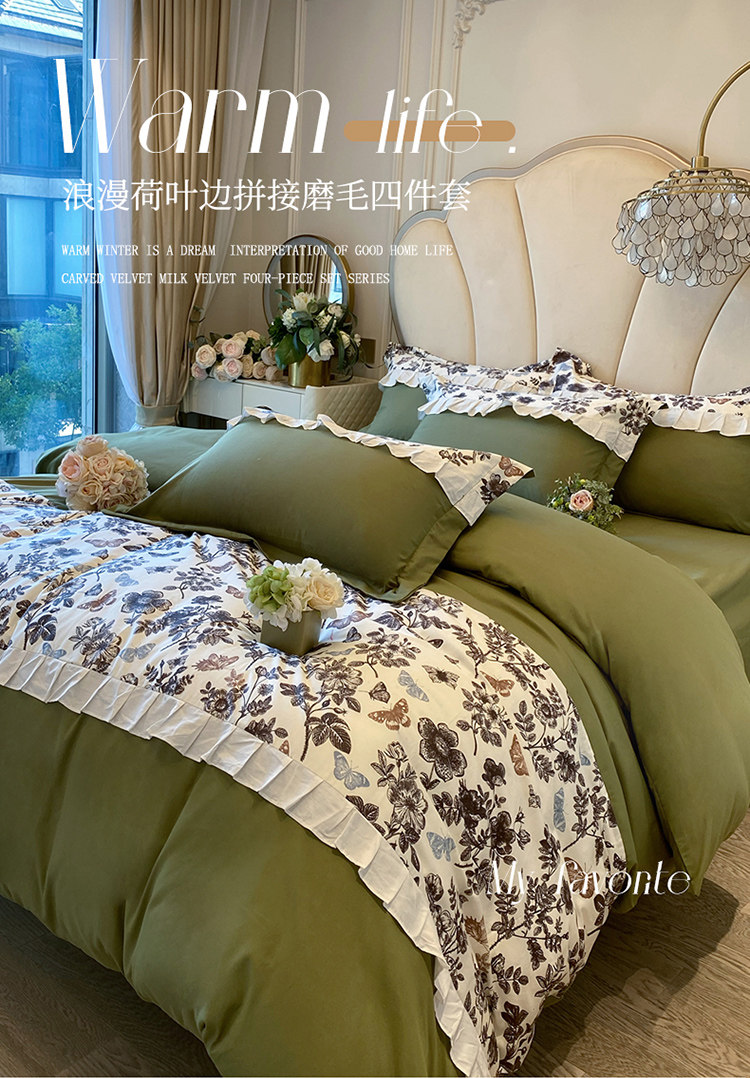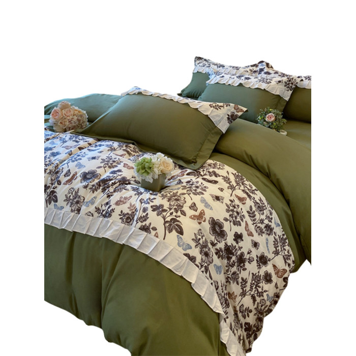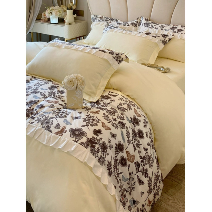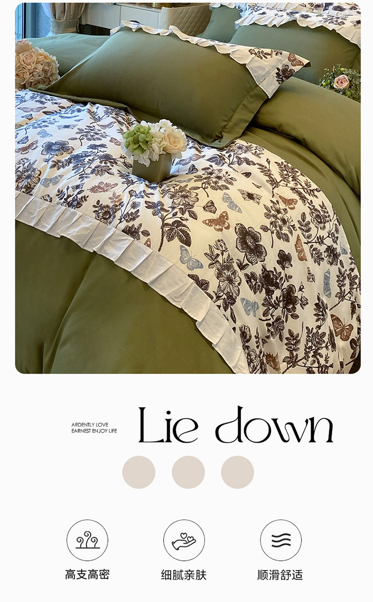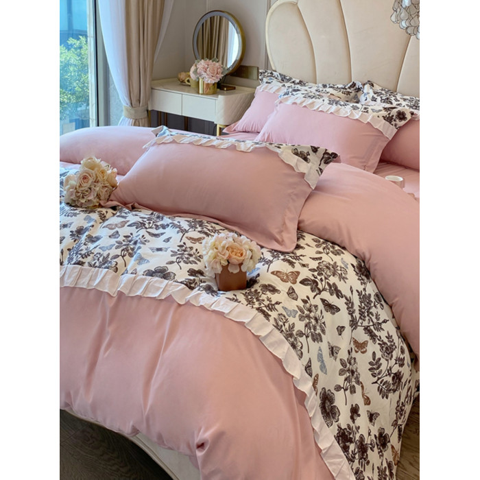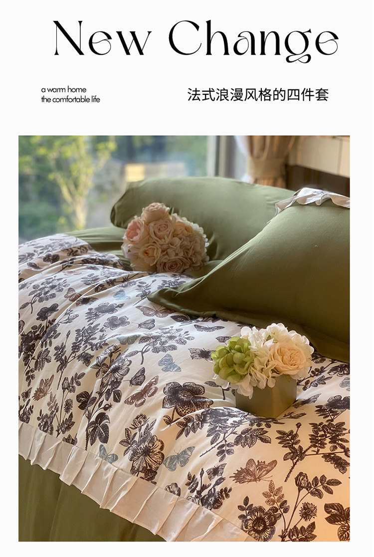 小紅書推薦法式公主風純棉全棉四件套裸睡少女被套床單床包小碎花