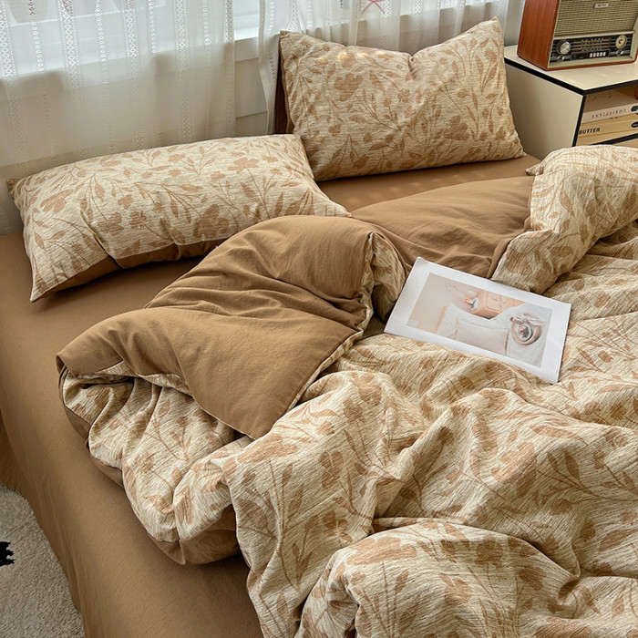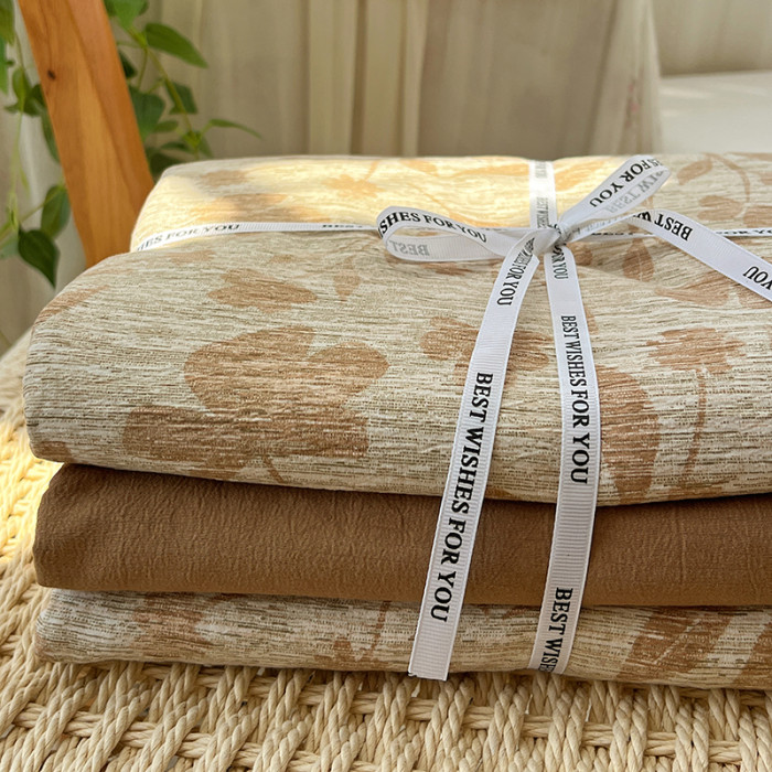 A類級復古風亞麻水洗棉四件套超柔裸睡純棉被套床單全棉輕奢床品4