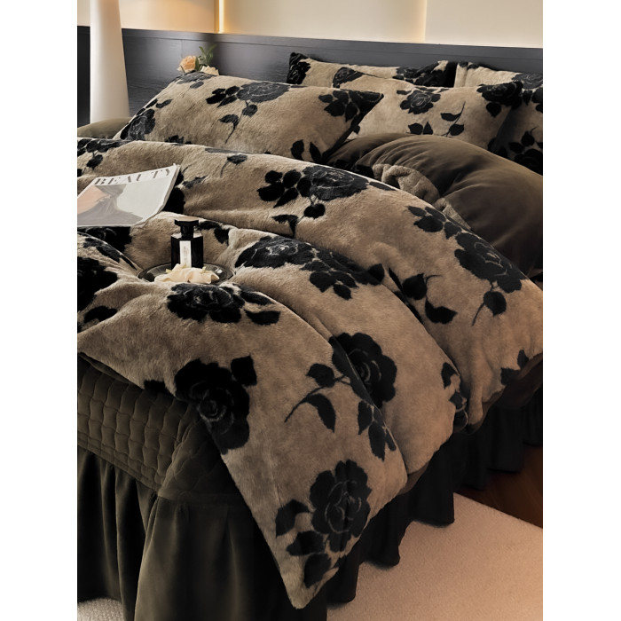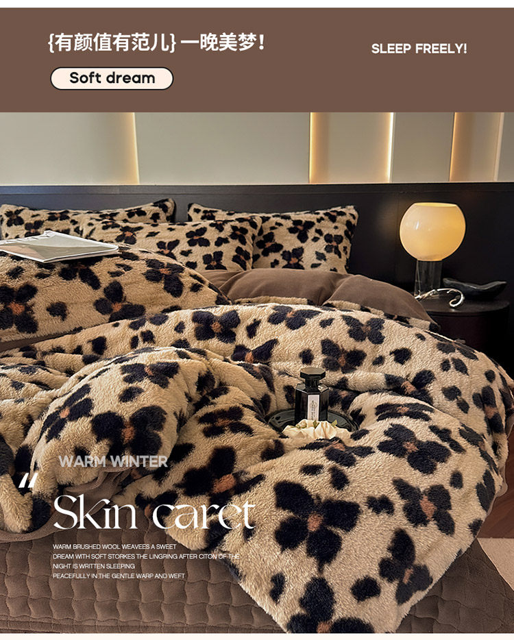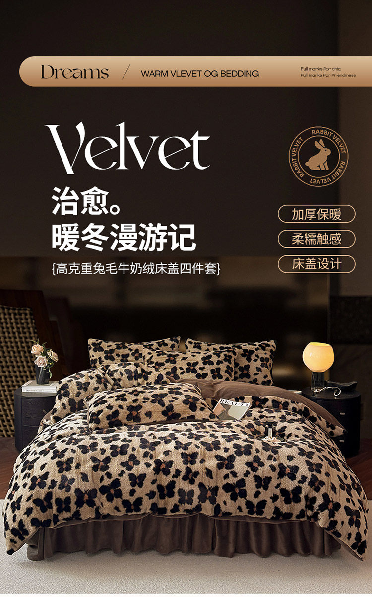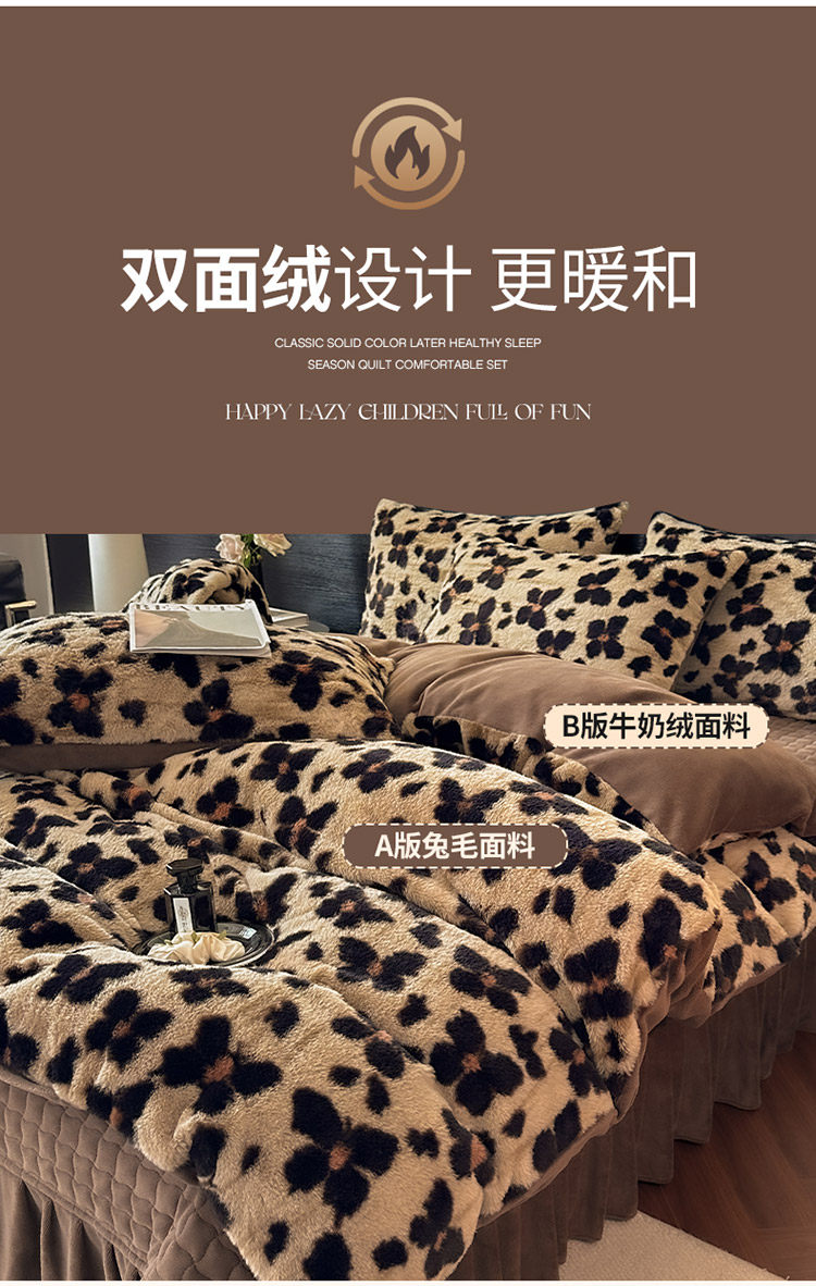 2025出口全球兔兔絨印花牛奶絨四件套冬季加厚床單床蓋雙面絨被套