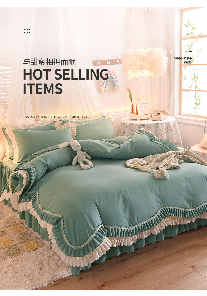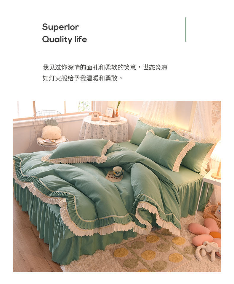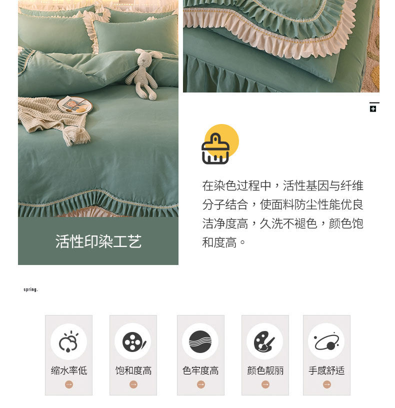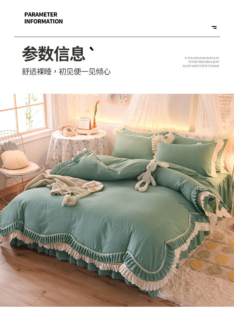 出口歐洲公主風床裙四件套被套花邊全棉少女純色床上用品裸睡四季