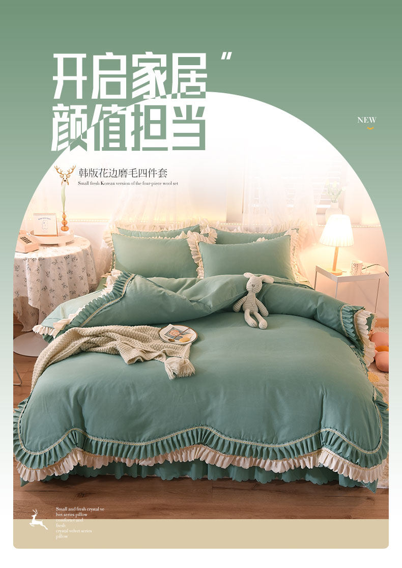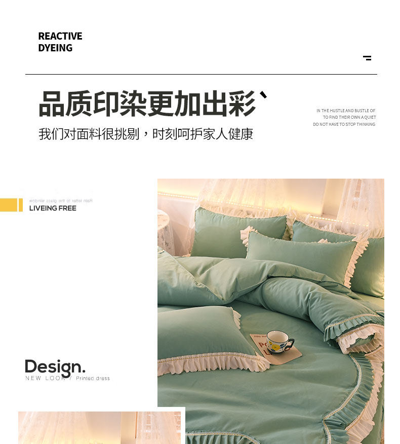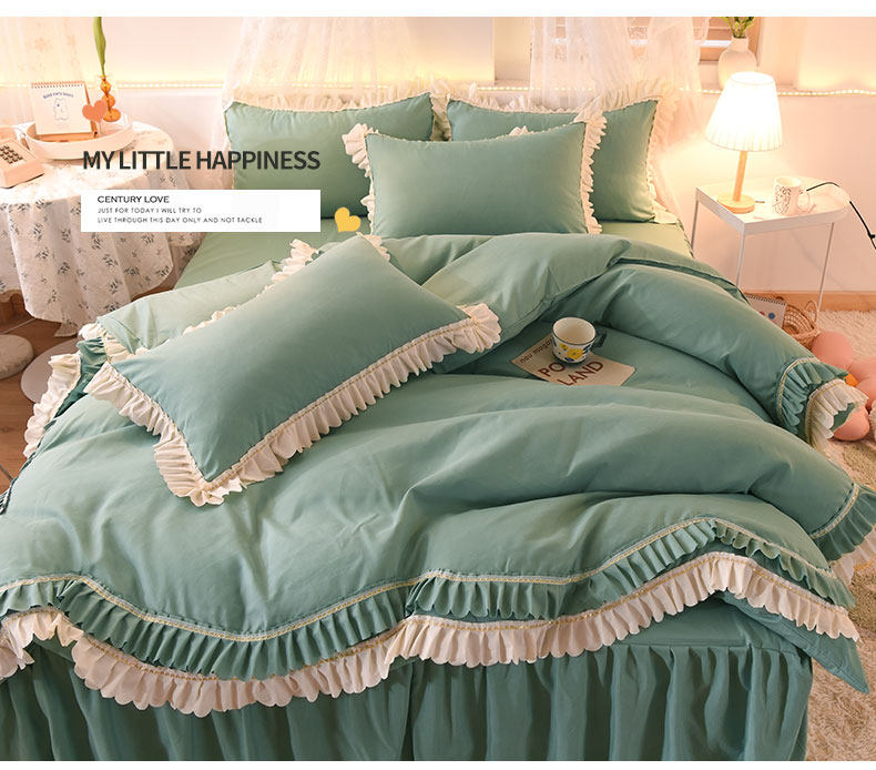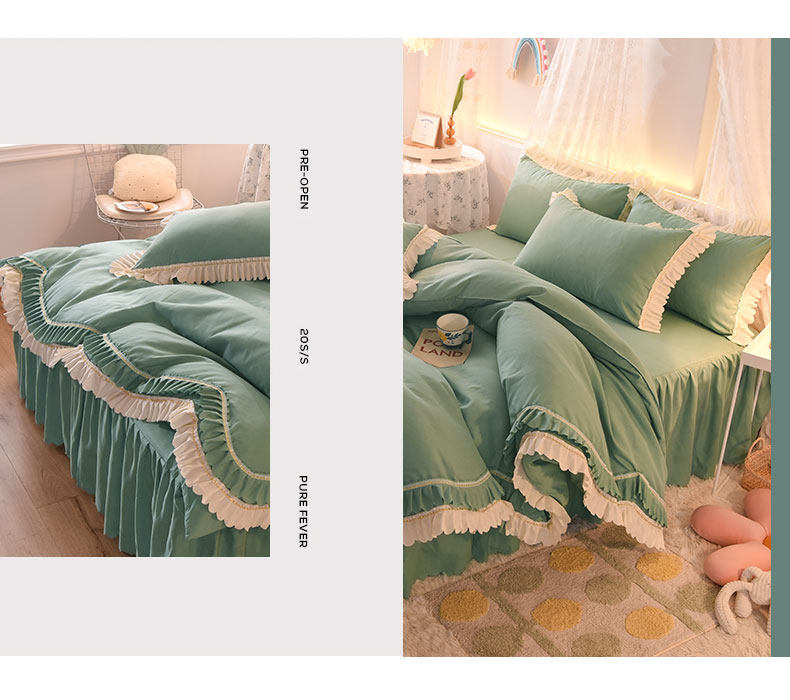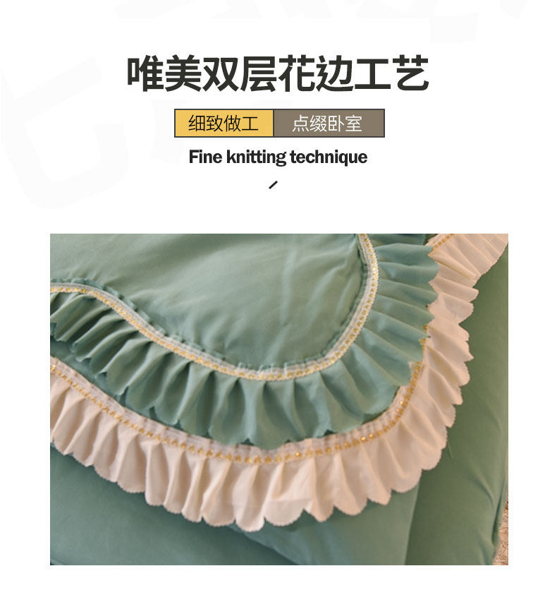 出口歐洲公主風床裙四件套被套花邊全棉少女純色床上用品裸睡四季