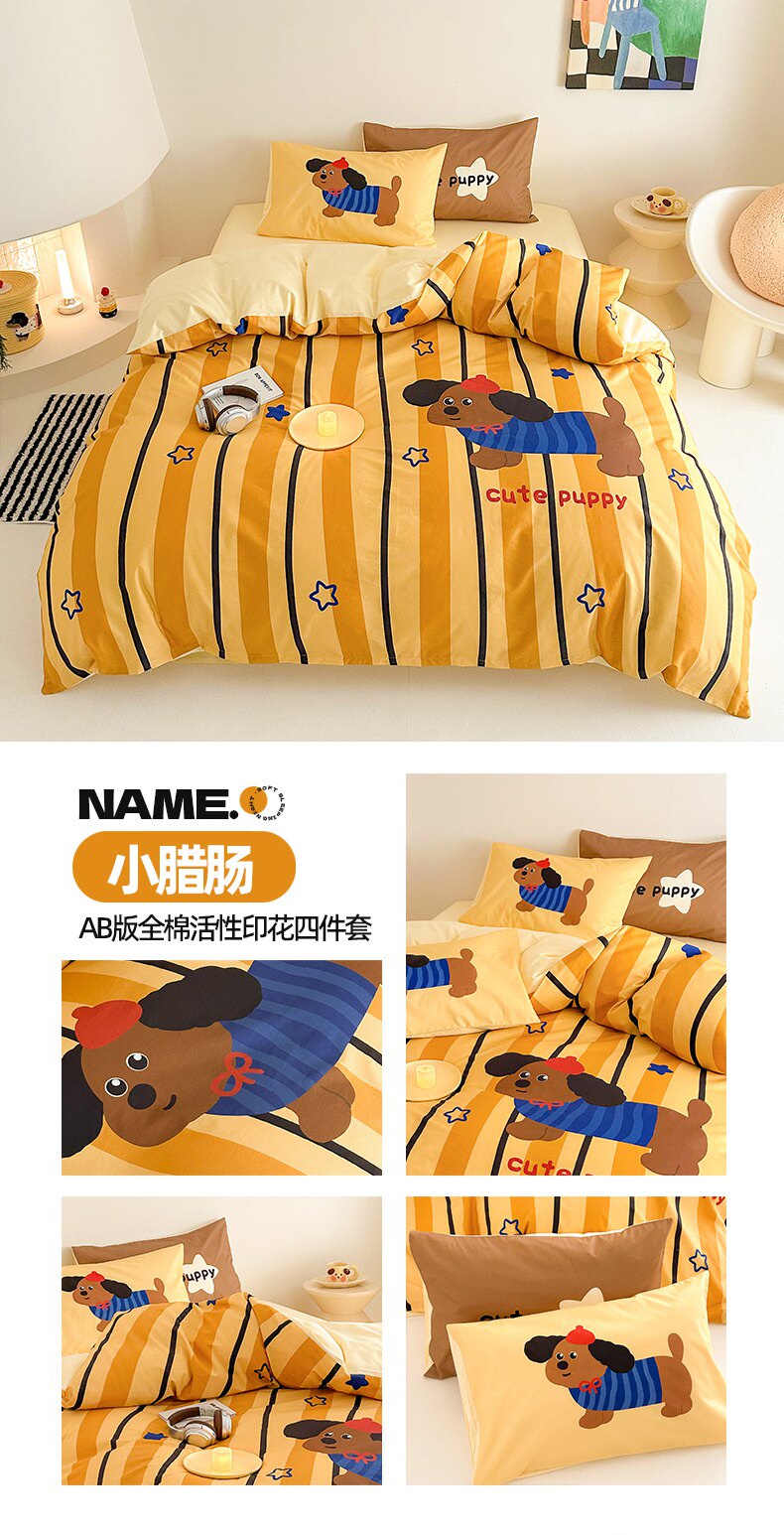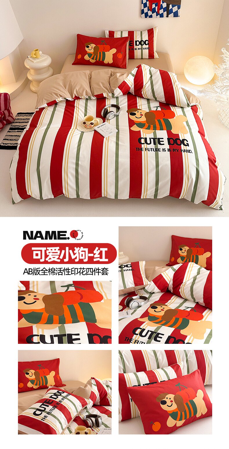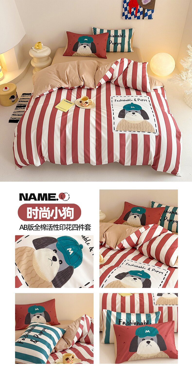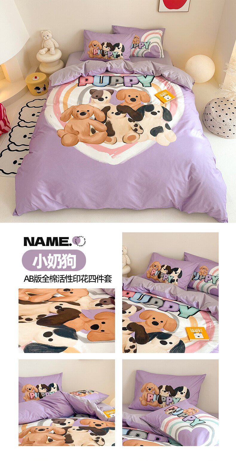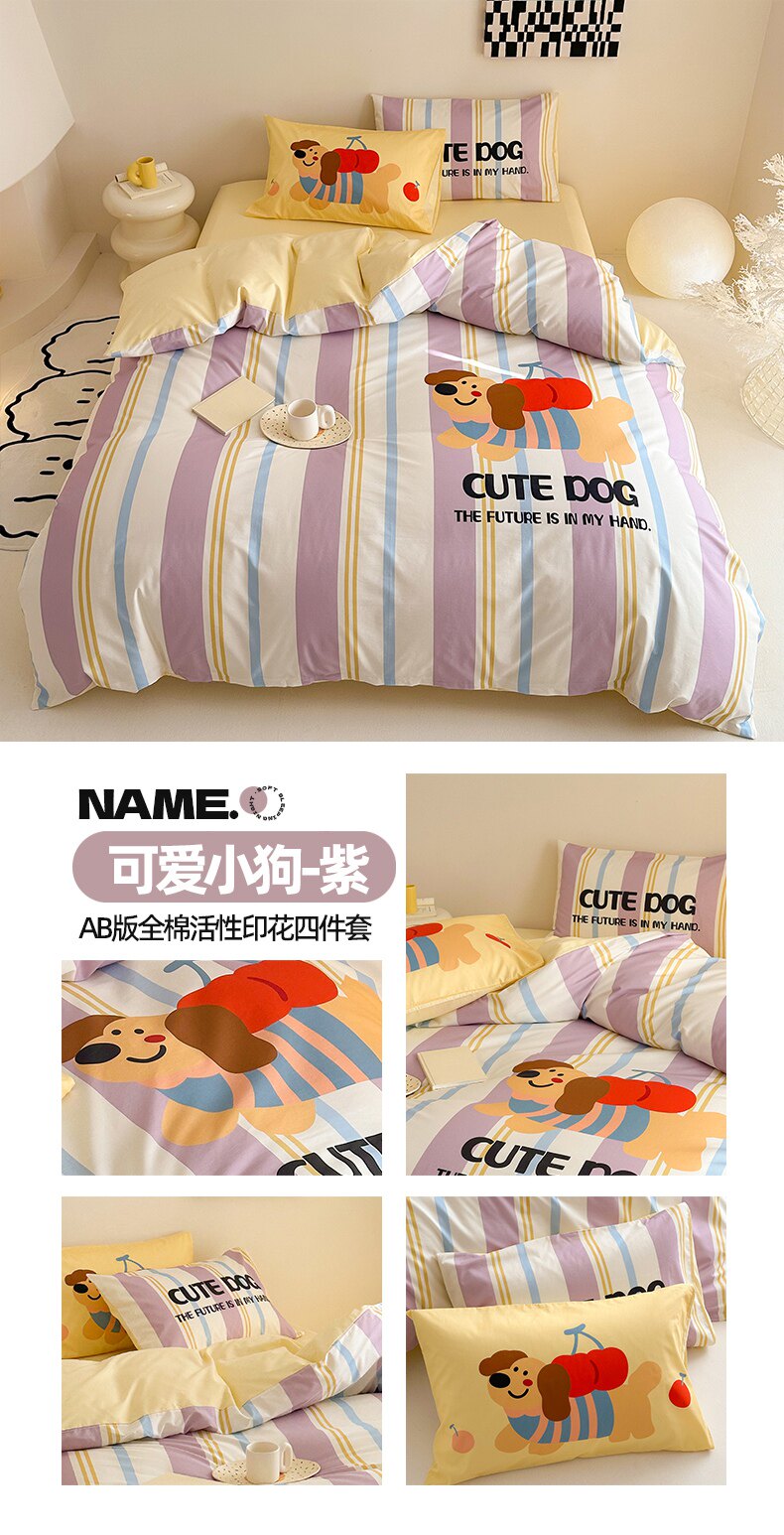 純棉卡通床上用品四件套床包全棉兒童學生床單單人被套三件套男孩