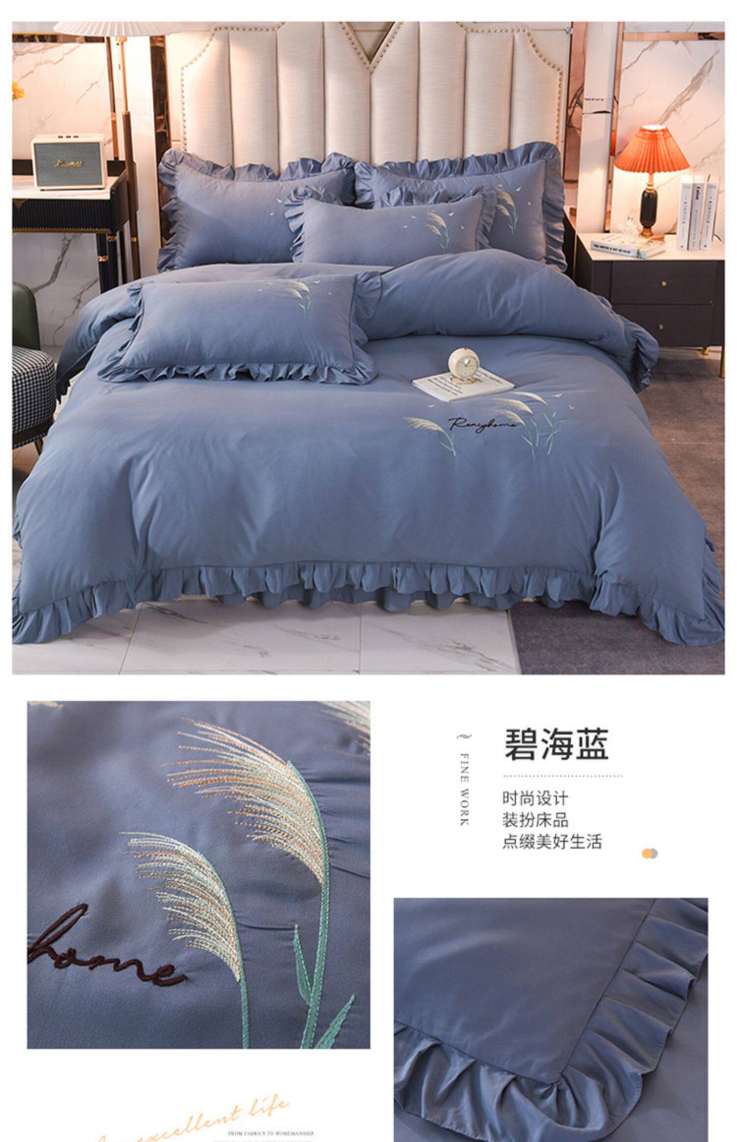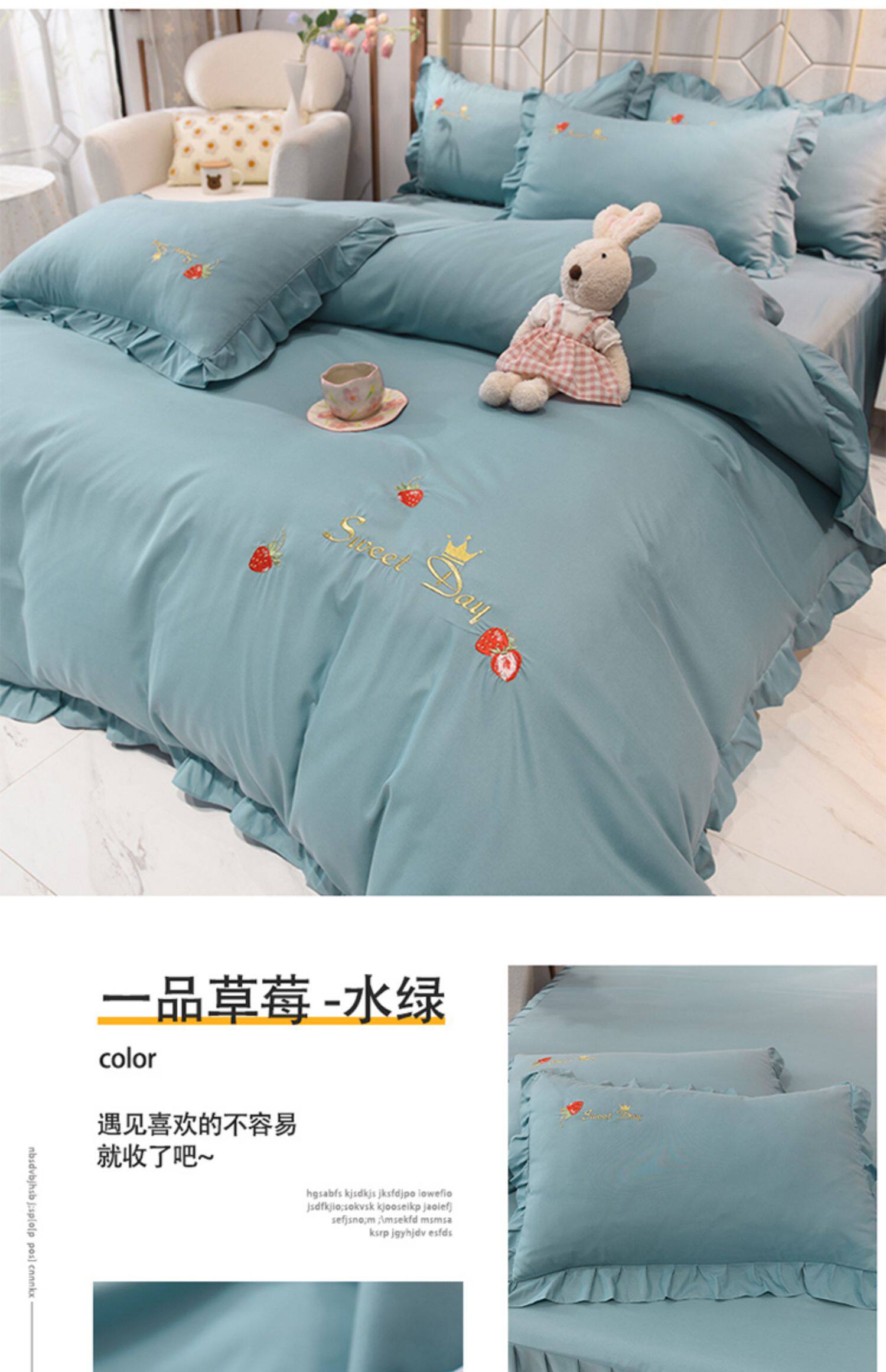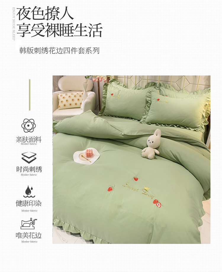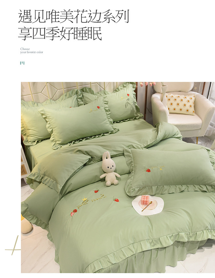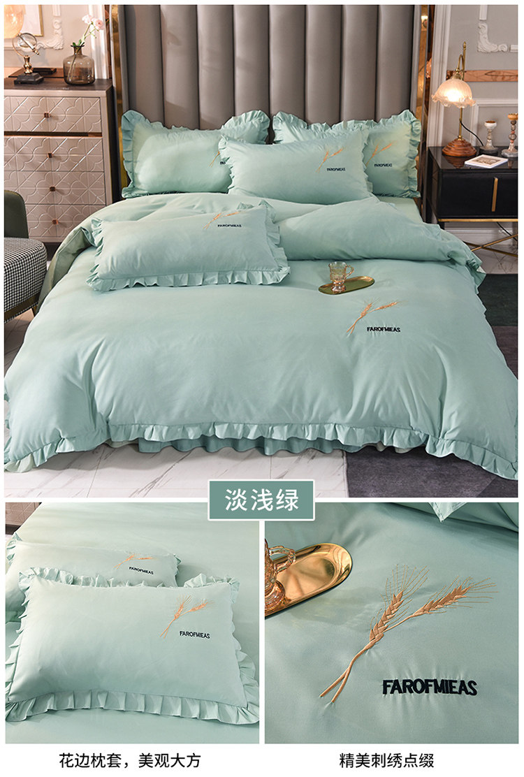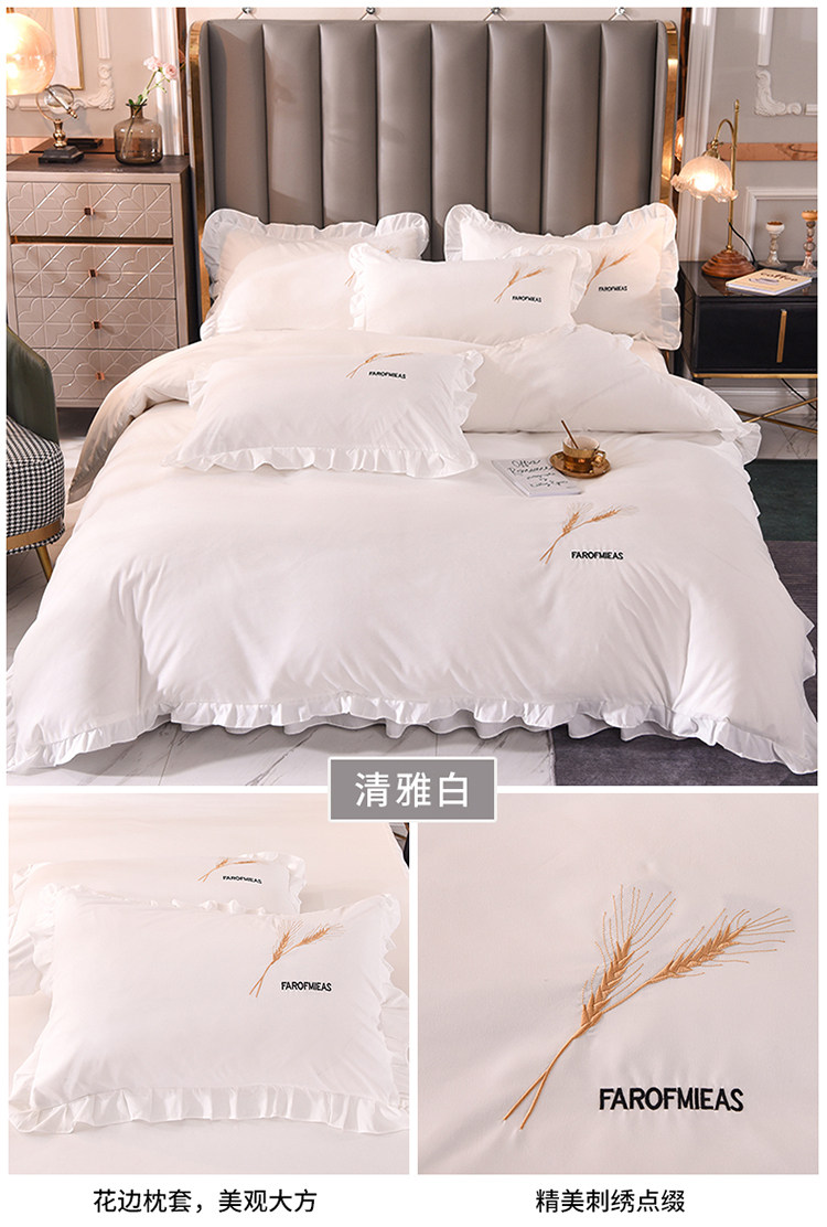 四季純棉床上被套四件套全棉床裙款式防滑荷葉花邊床單簡約水洗棉