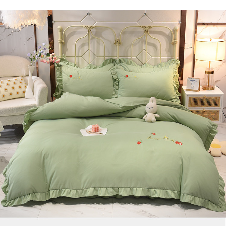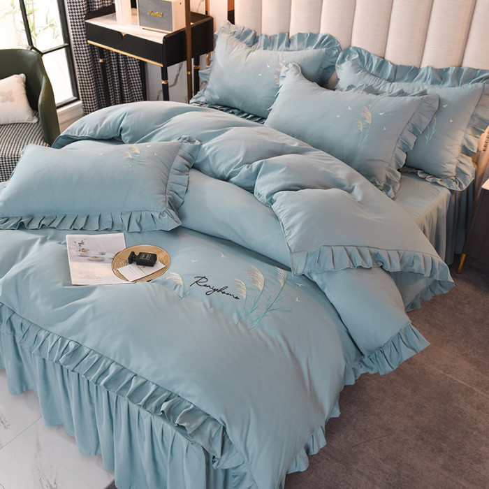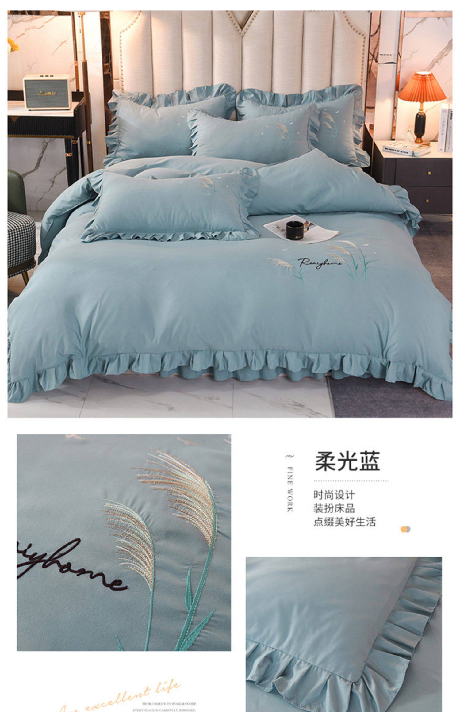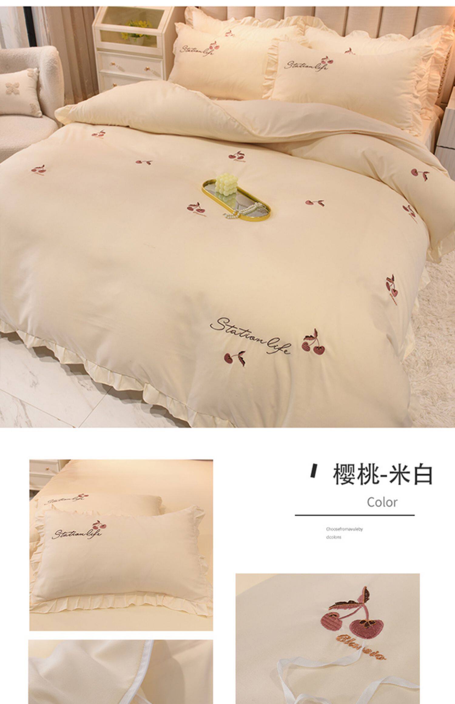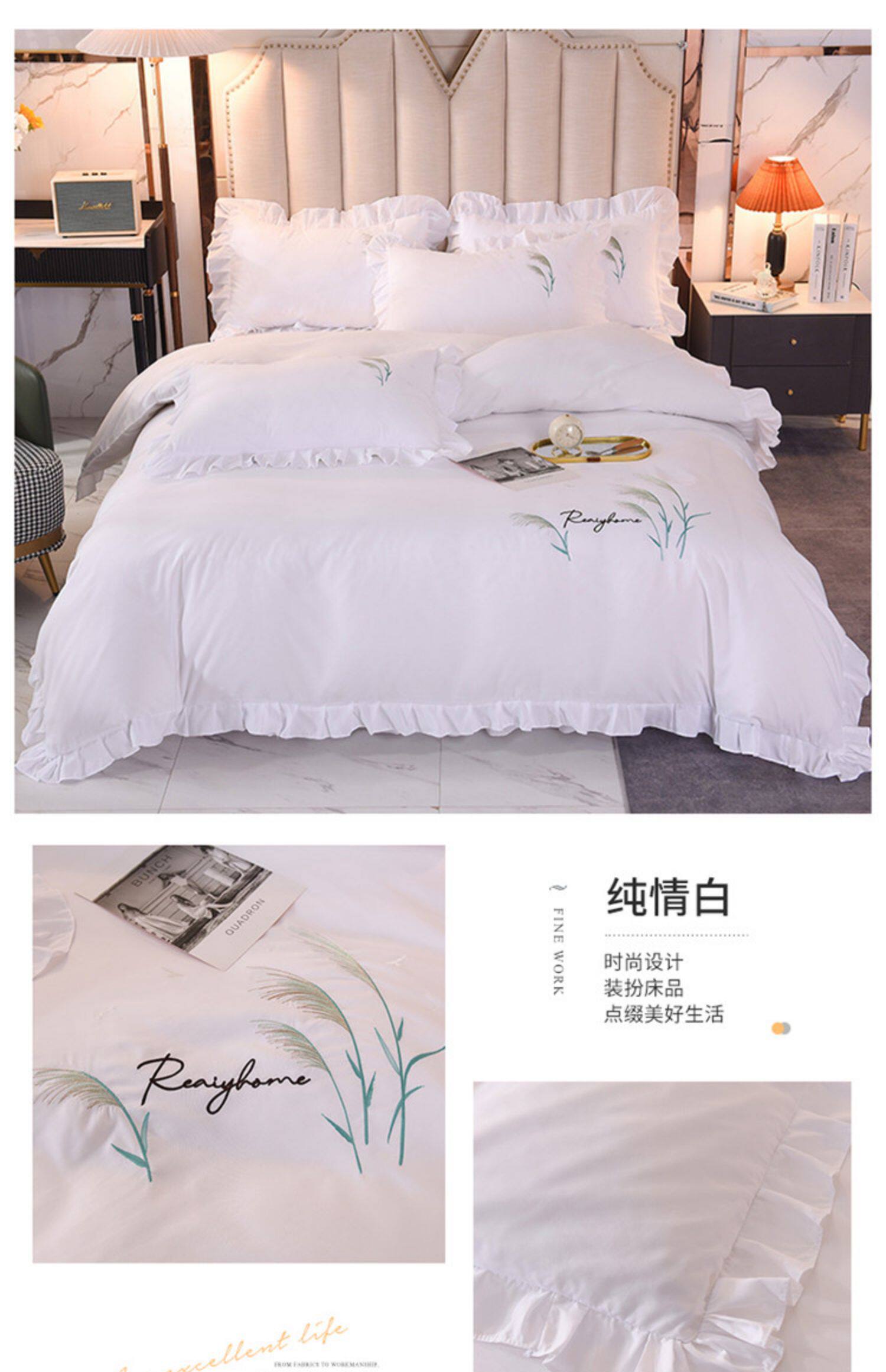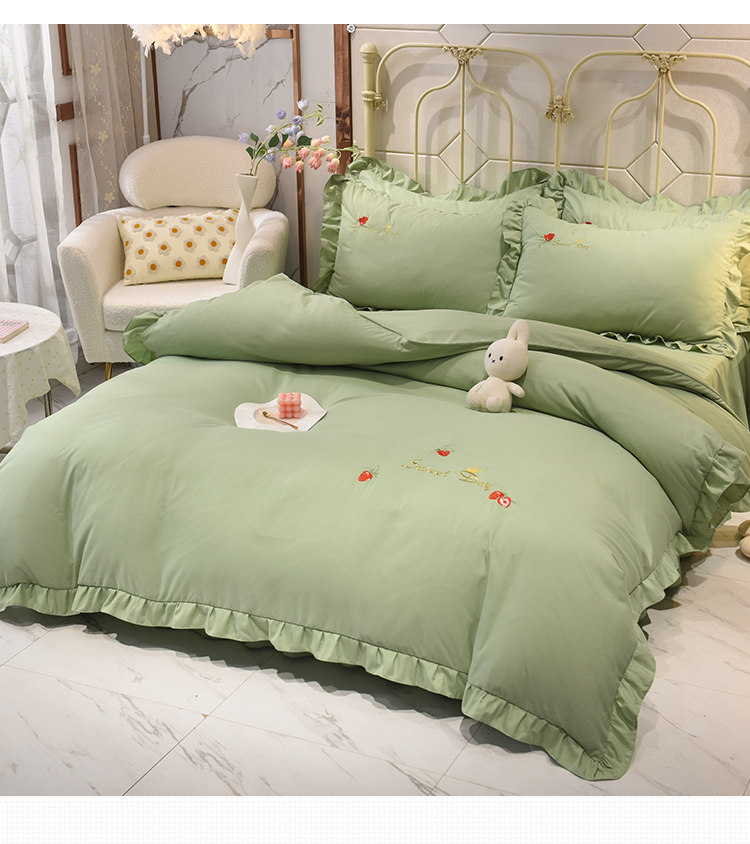 四季純棉床上被套四件套全棉床裙款式防滑荷葉花邊床單簡約水洗棉