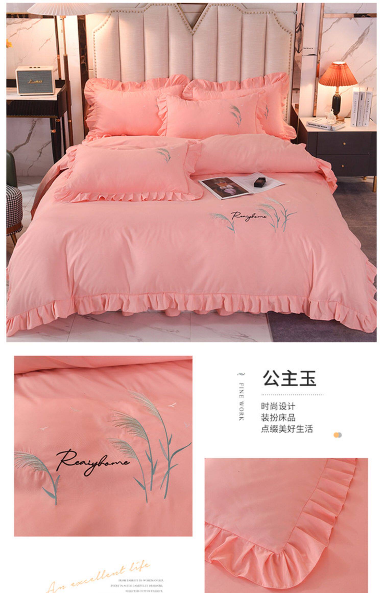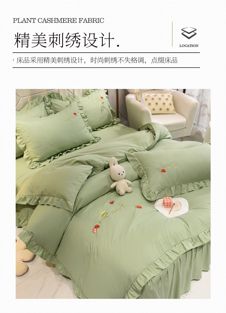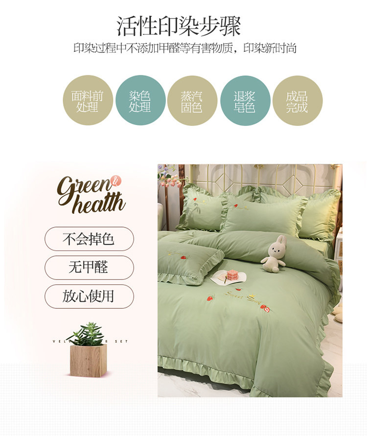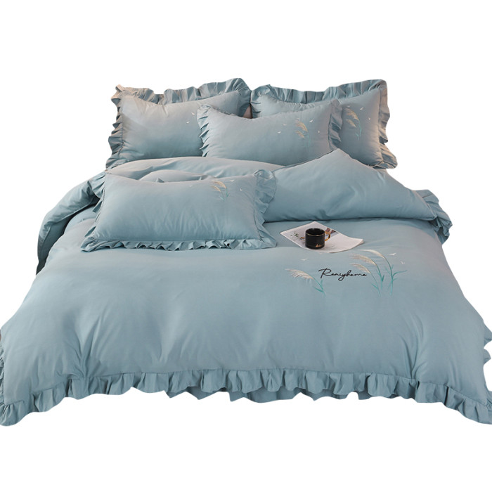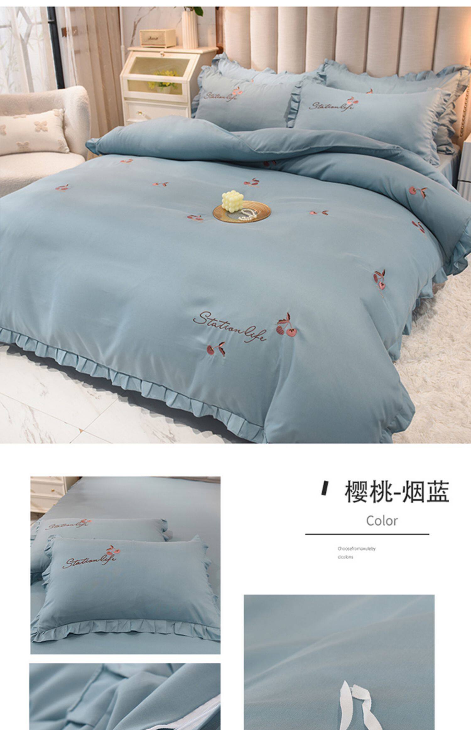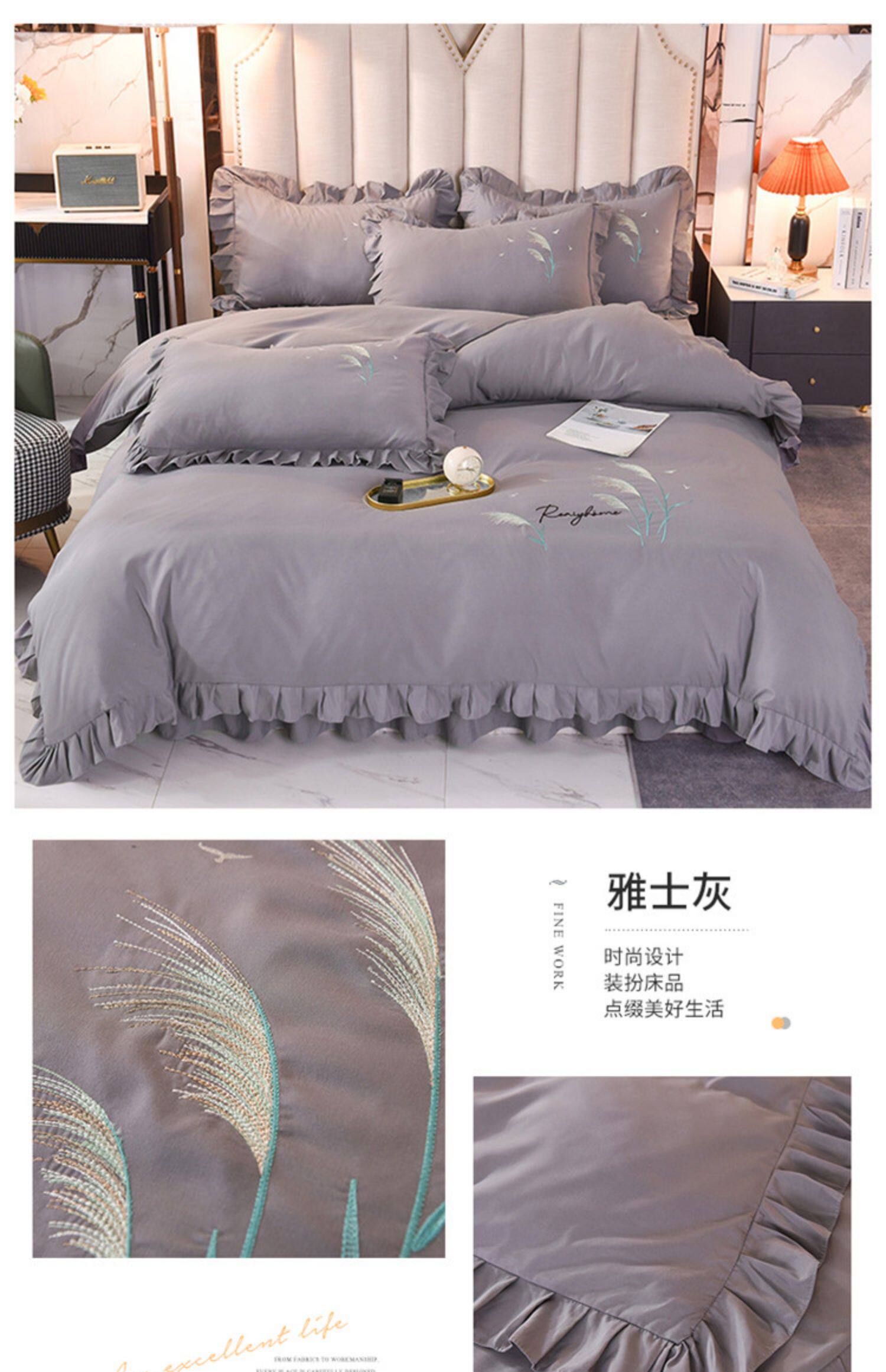 四季純棉床上被套四件套全棉床裙款式防滑荷葉花邊床單簡約水洗棉