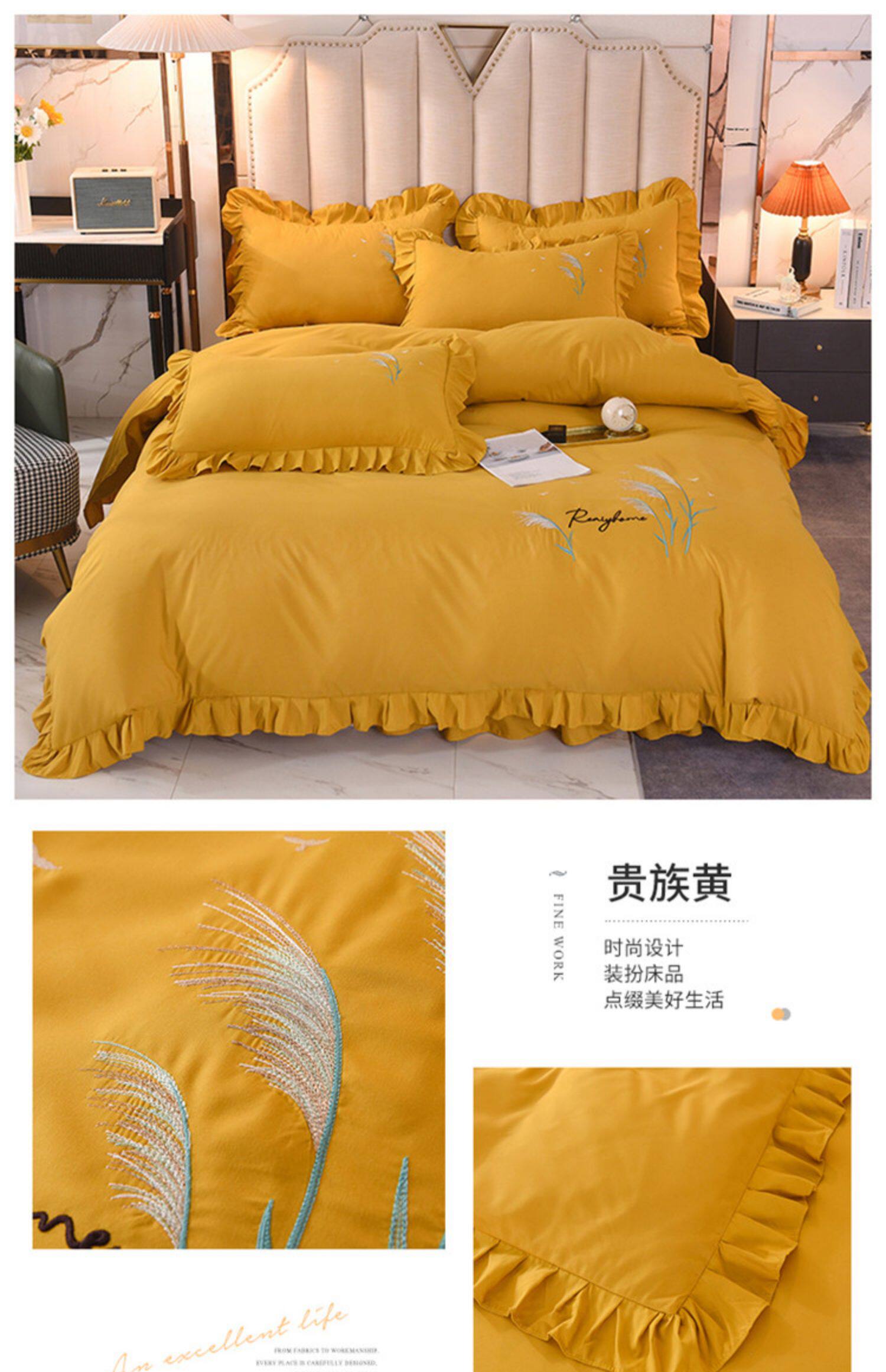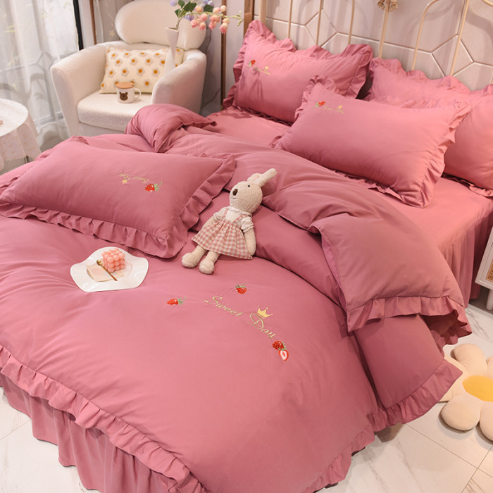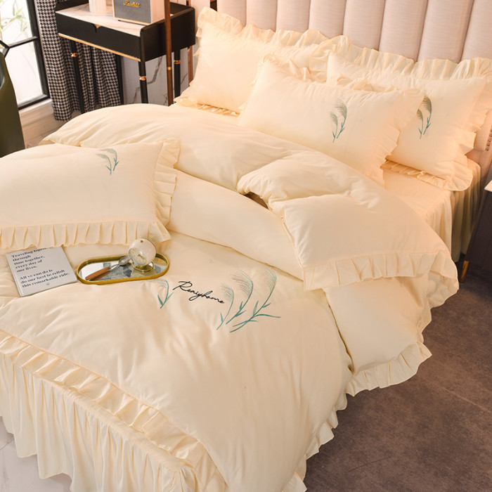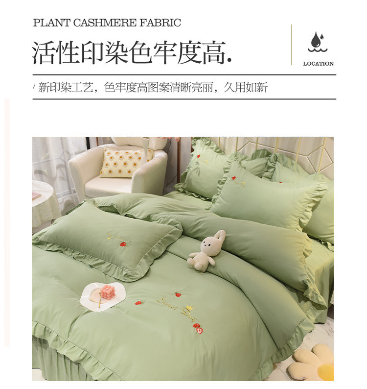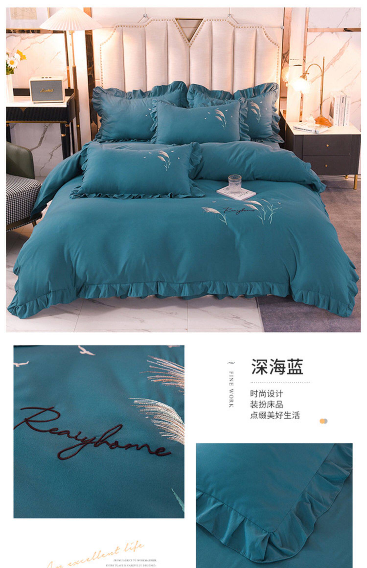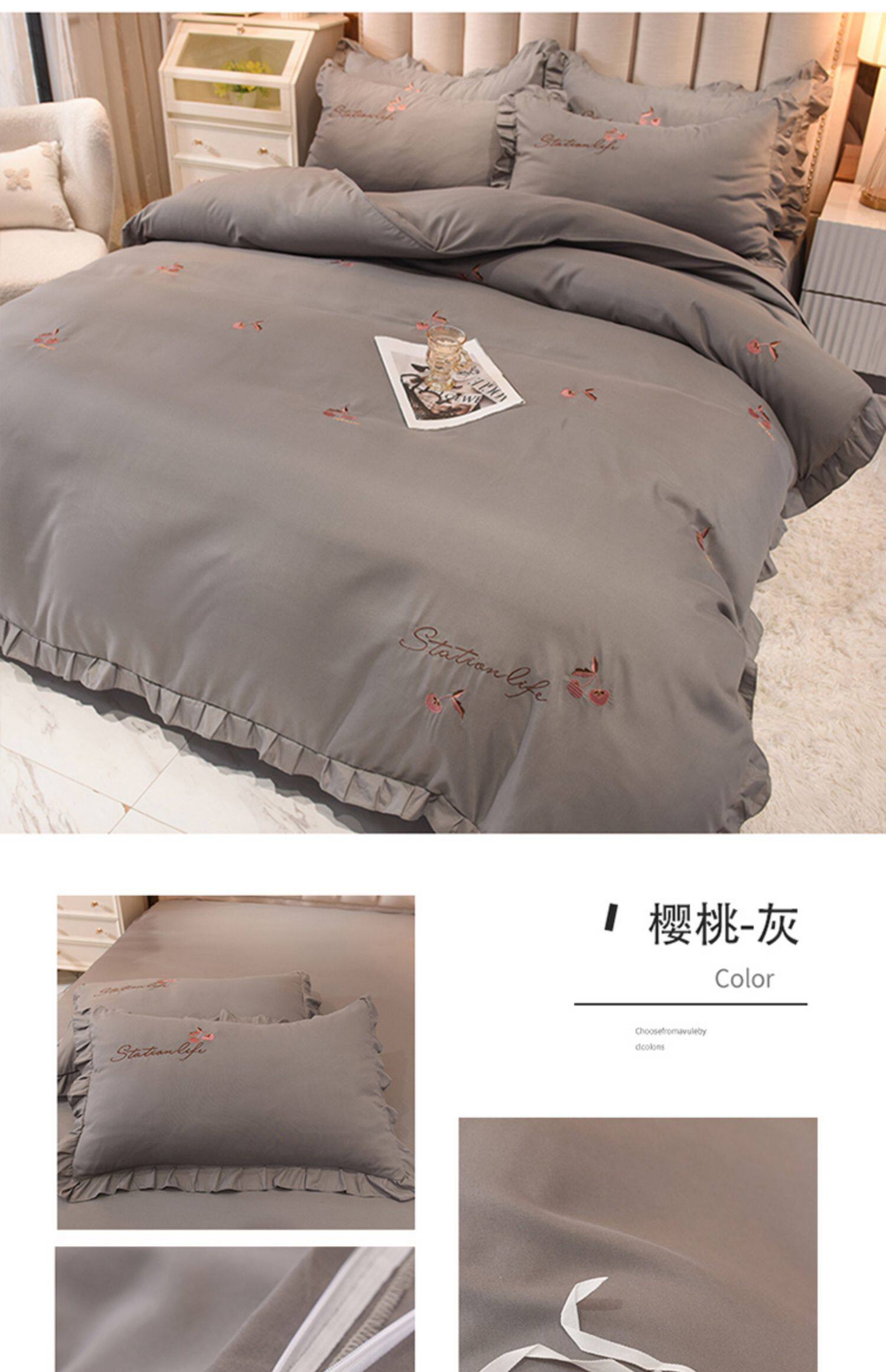 四季純棉床上被套四件套全棉床裙款式防滑荷葉花邊床單簡約水洗棉