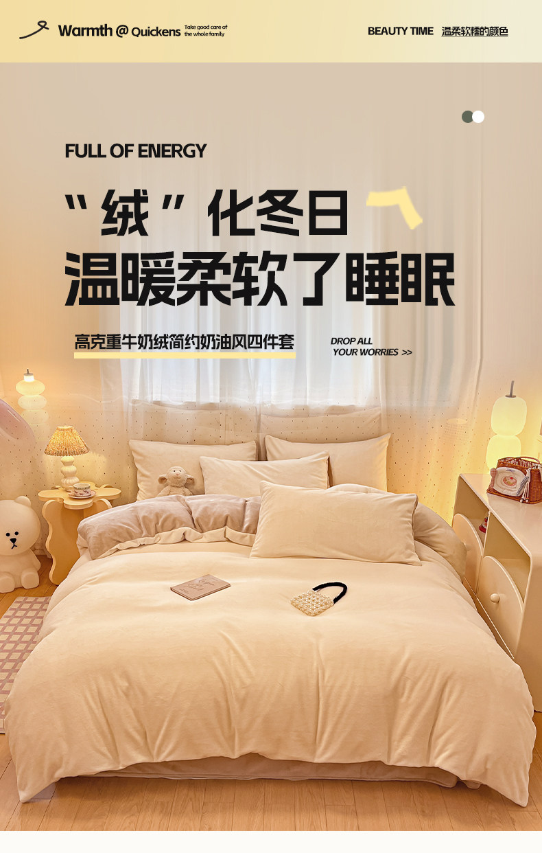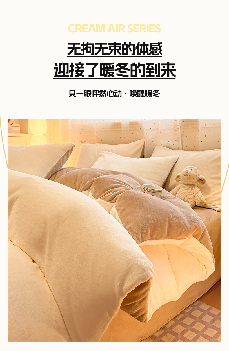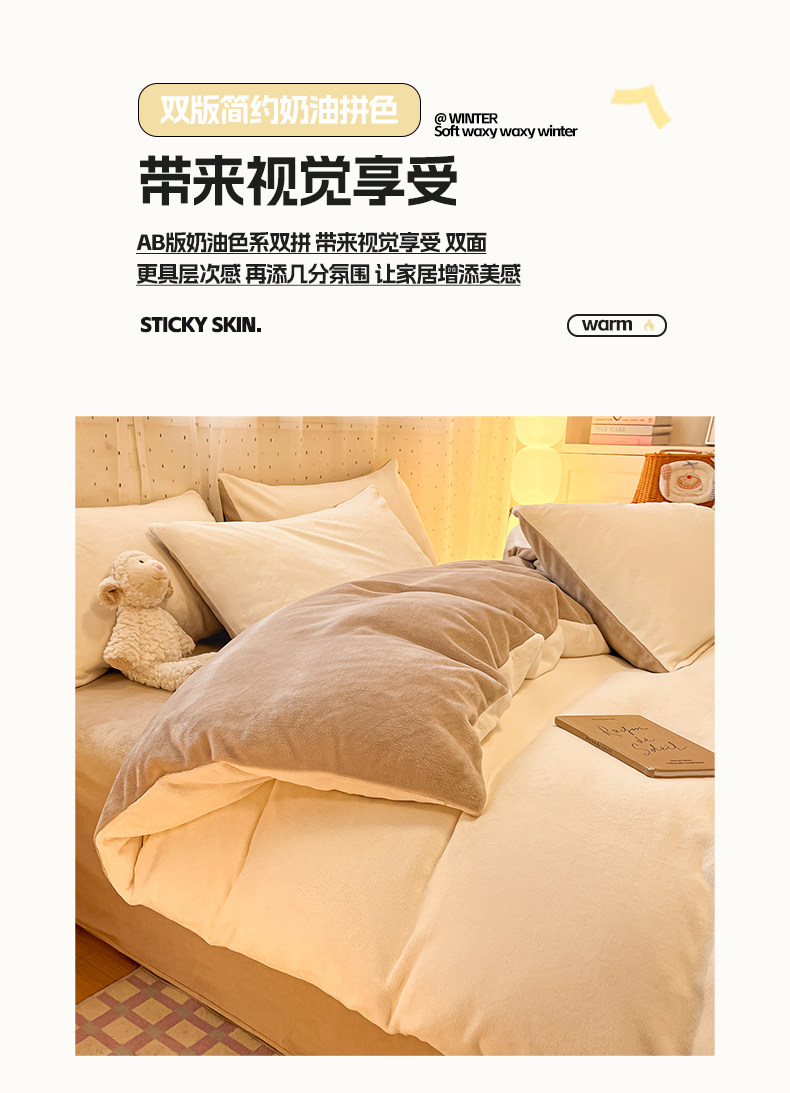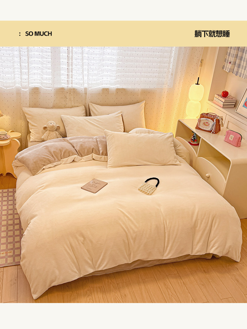 無印良品純色秋冬牛奶絨四件套珊瑚絨床上絨三件套冬季加絨法蘭絨