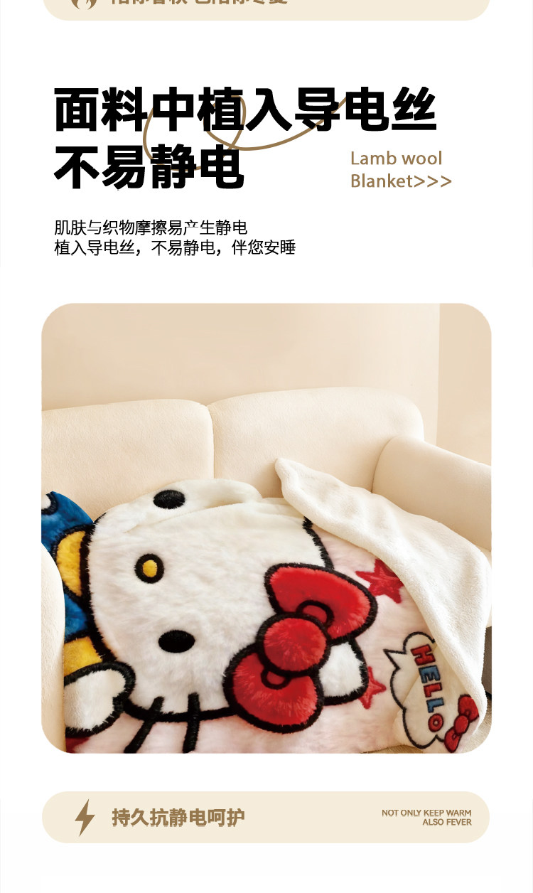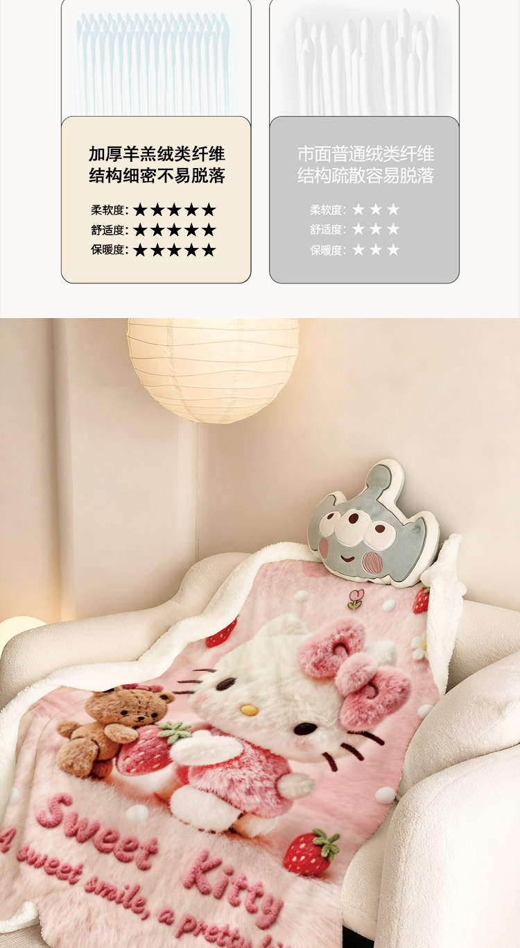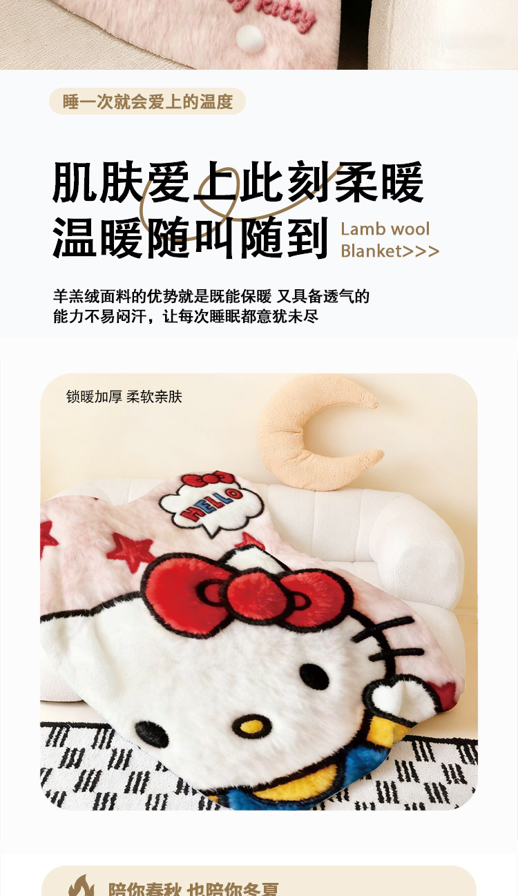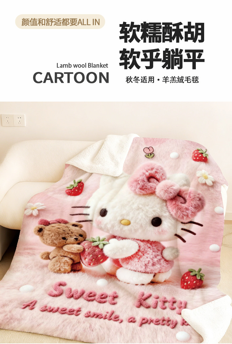 HelloKitty加厚毯子羊羔絨毛毯辦公學生披肩蓋腿毯兒童保暖蓋毯