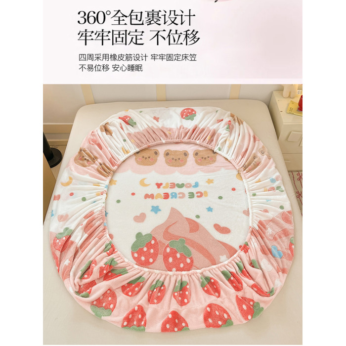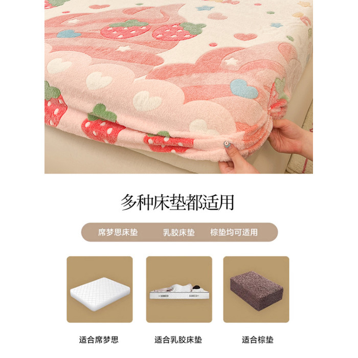 雙面加絨床包雪花絨床罩單件加厚珊瑚牛奶絨冬季床墊保護套防塵罩